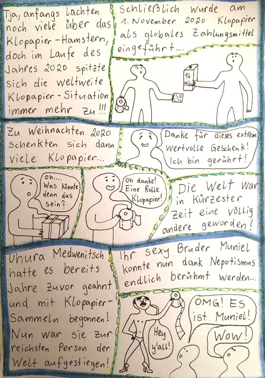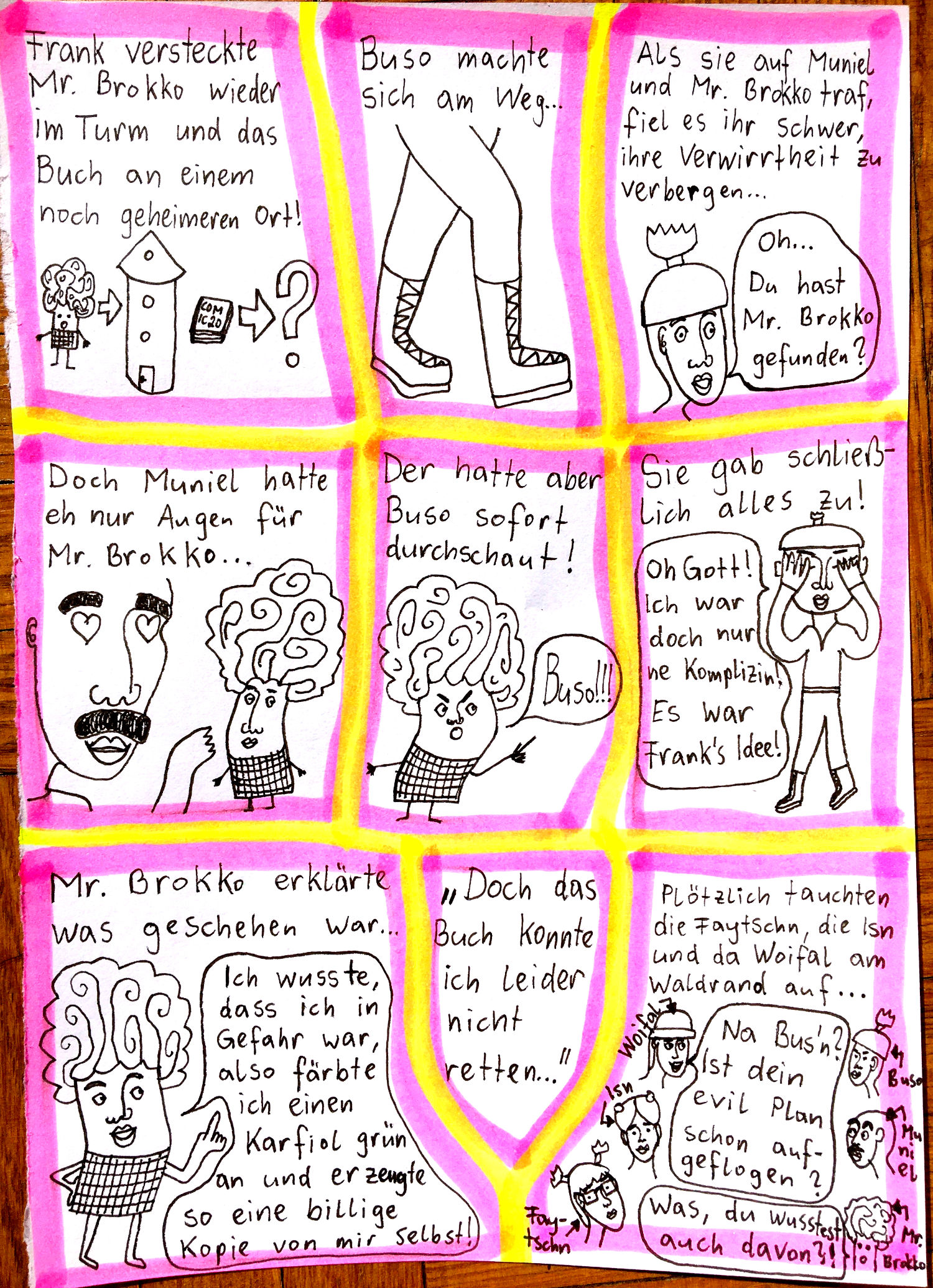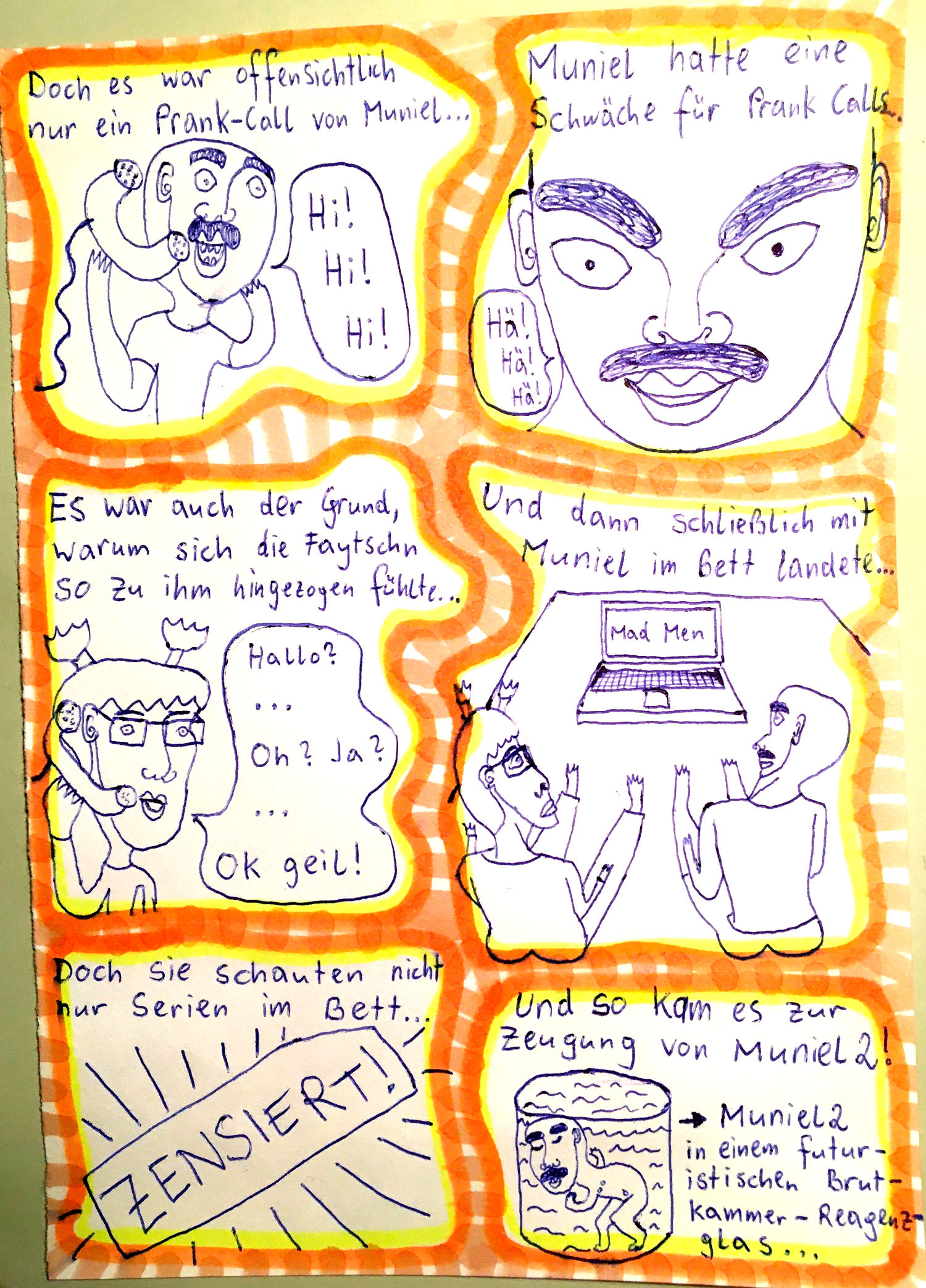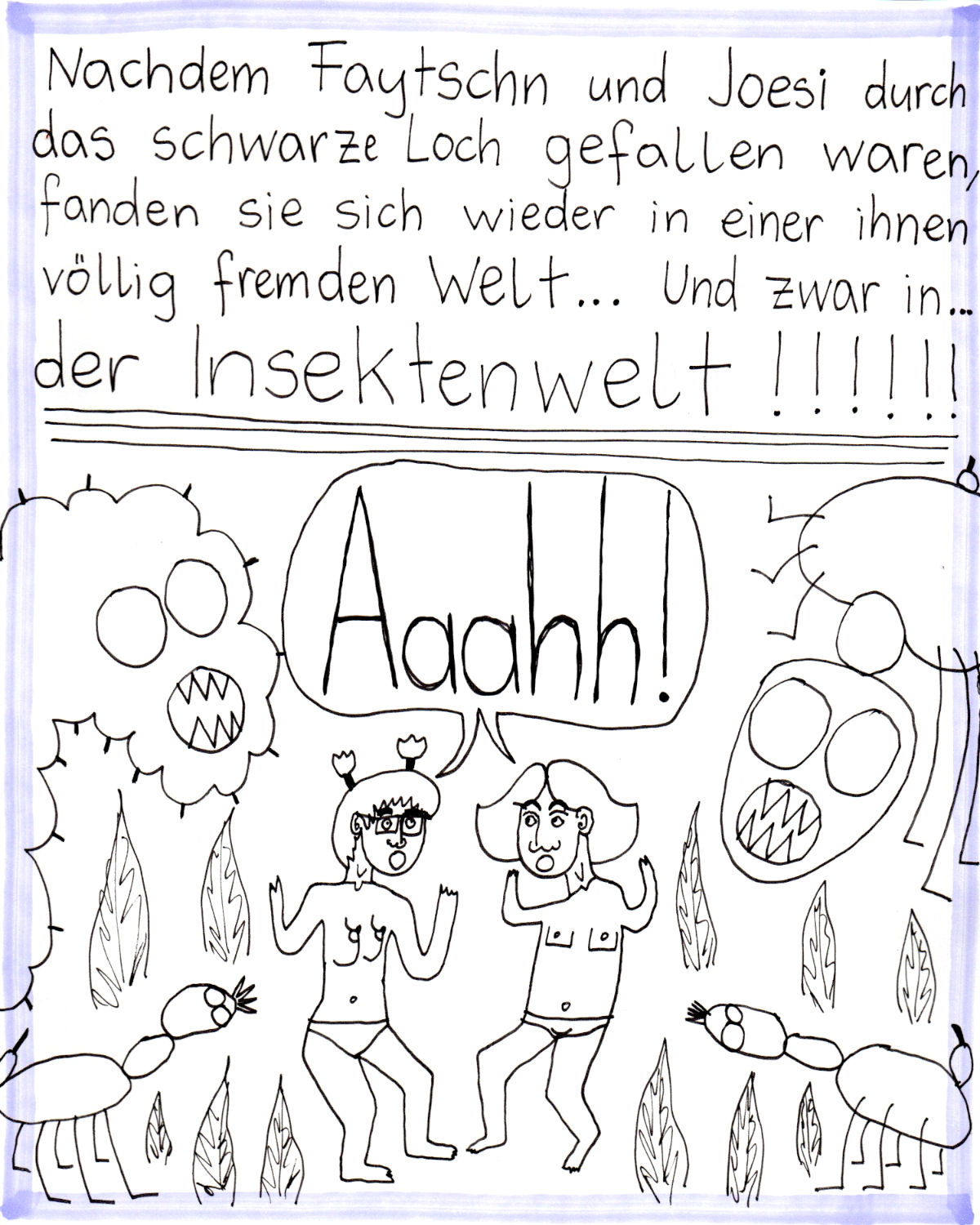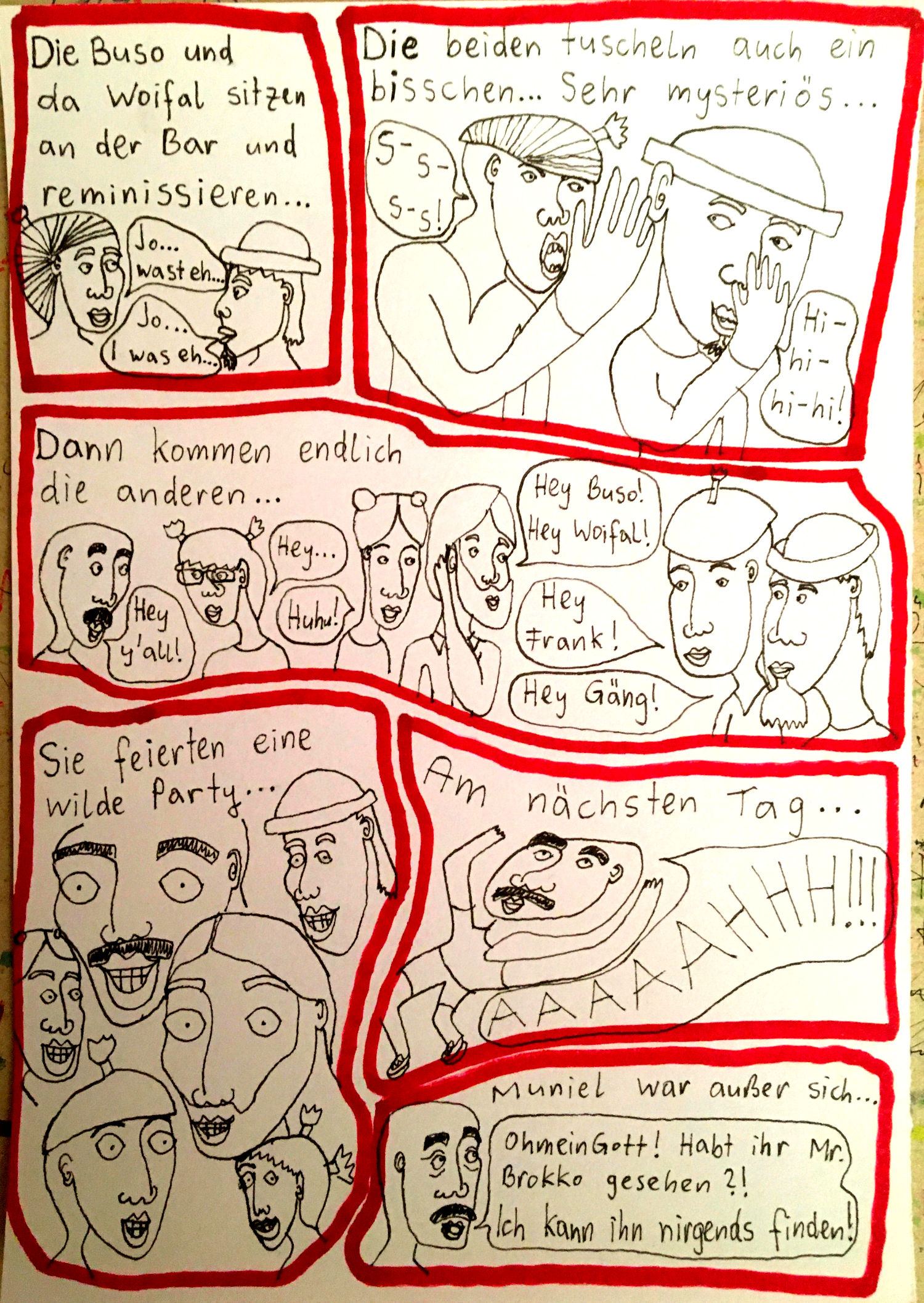 „Faytschn“ und ich hatten die Idee: Wir zeichnen abwechselnd Comicseiten, fotografieren sie und teilen sie in einer WhatsApp-Gruppe.