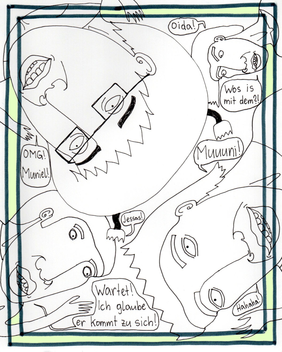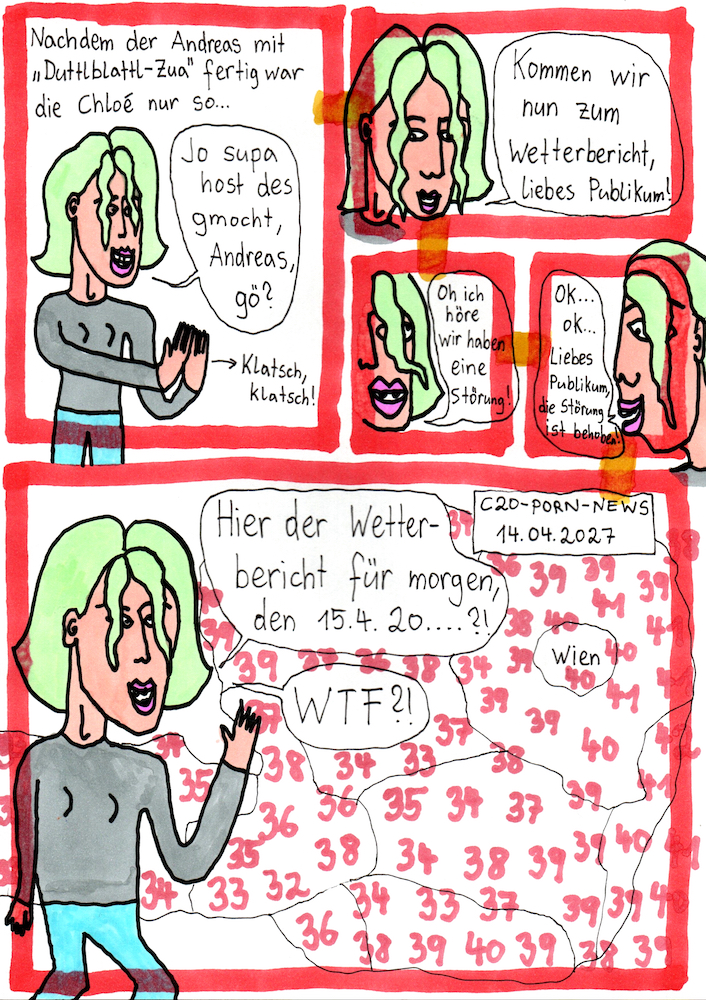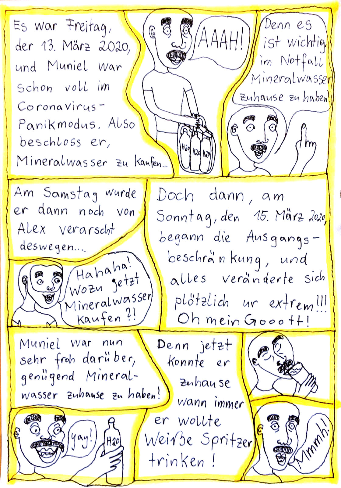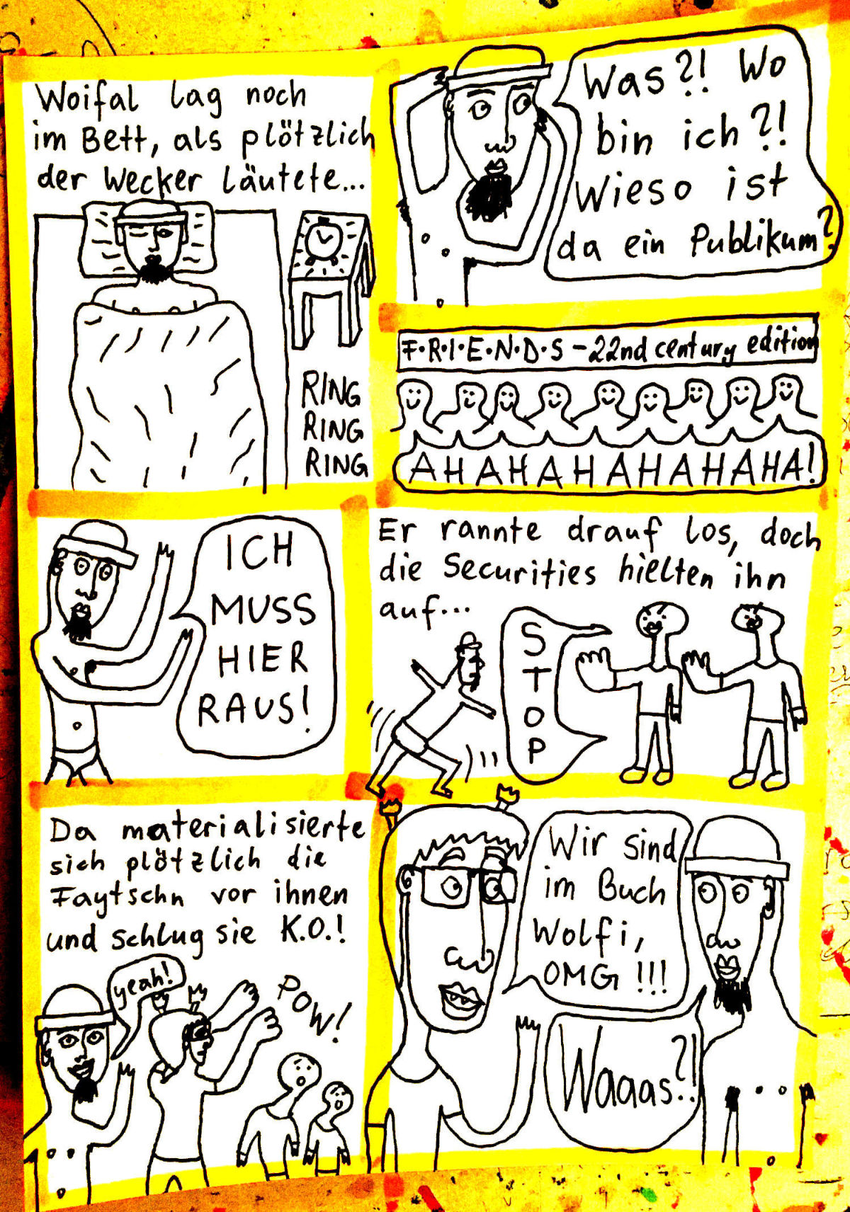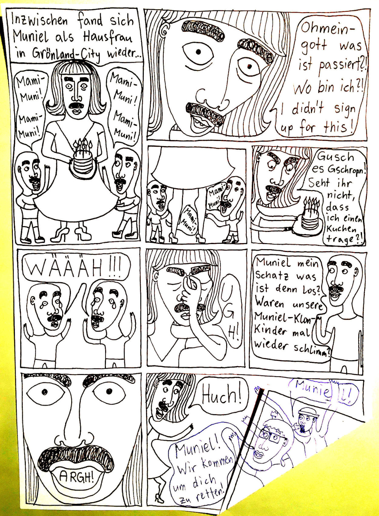 „Faytschn“ und ich hatten die Idee: Wir zeichnen abwechselnd Comicseiten, fotografieren sie und teilen sie in einer WhatsApp-Gruppe.