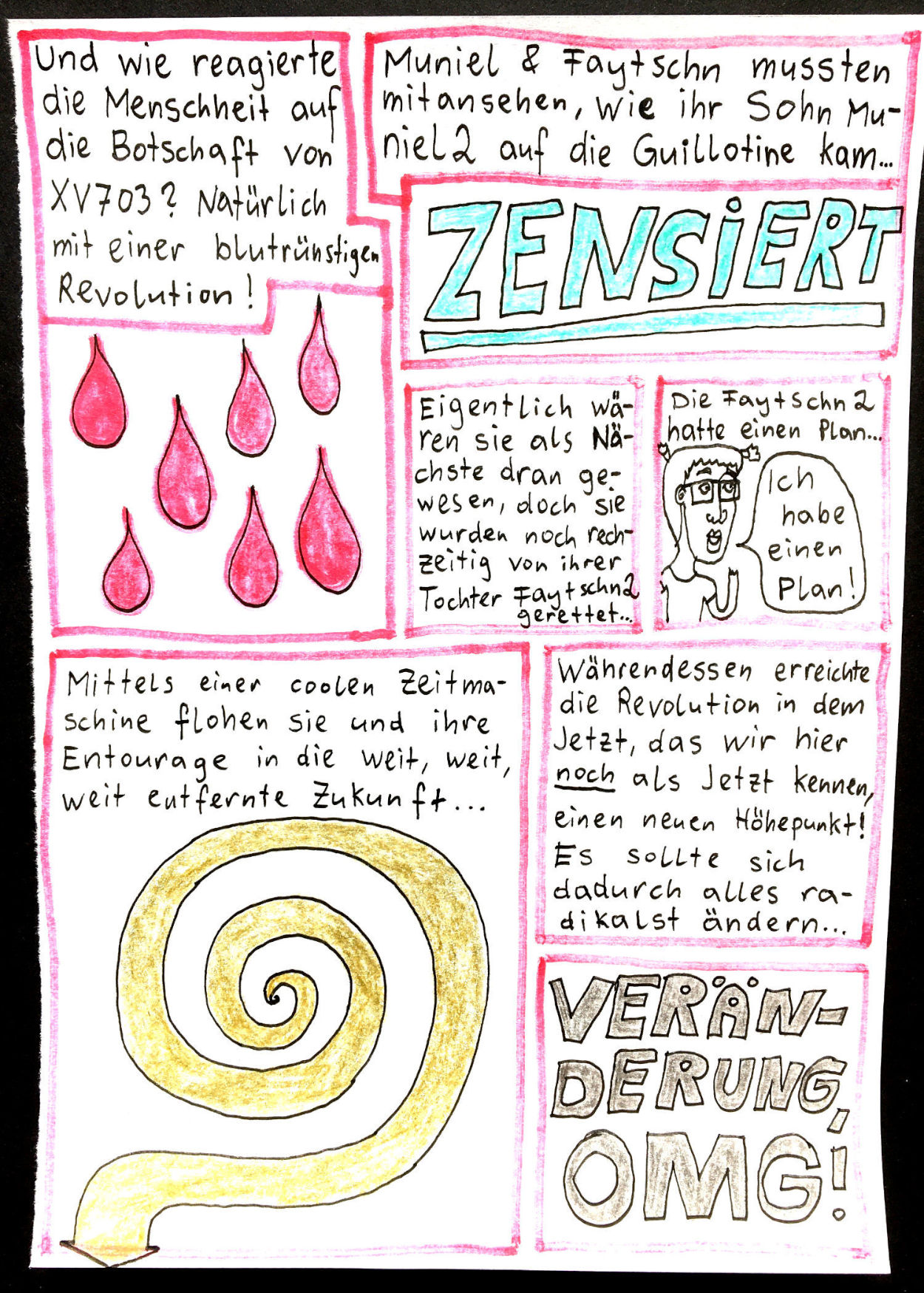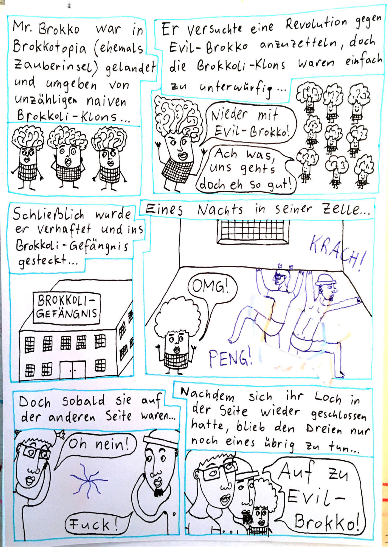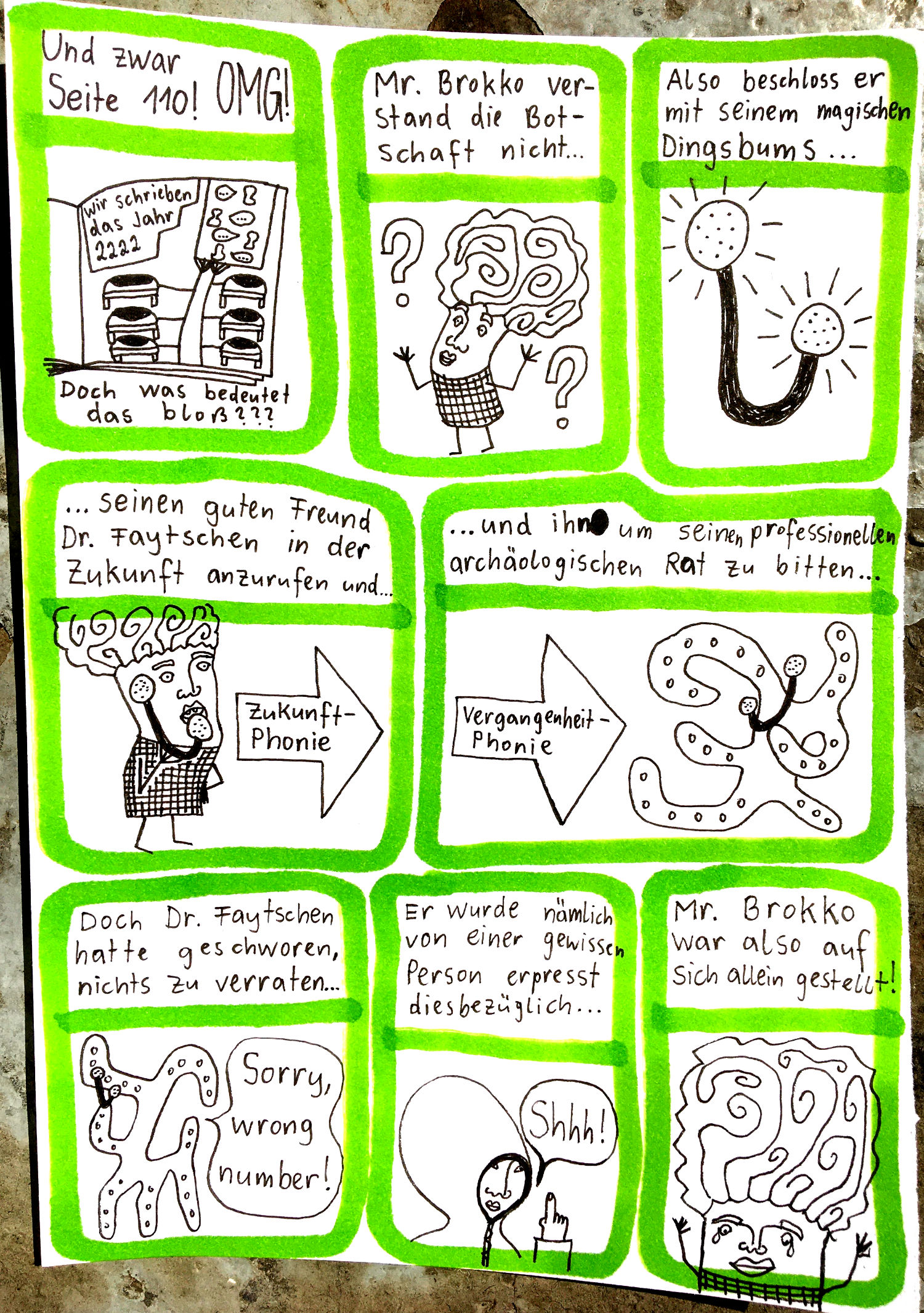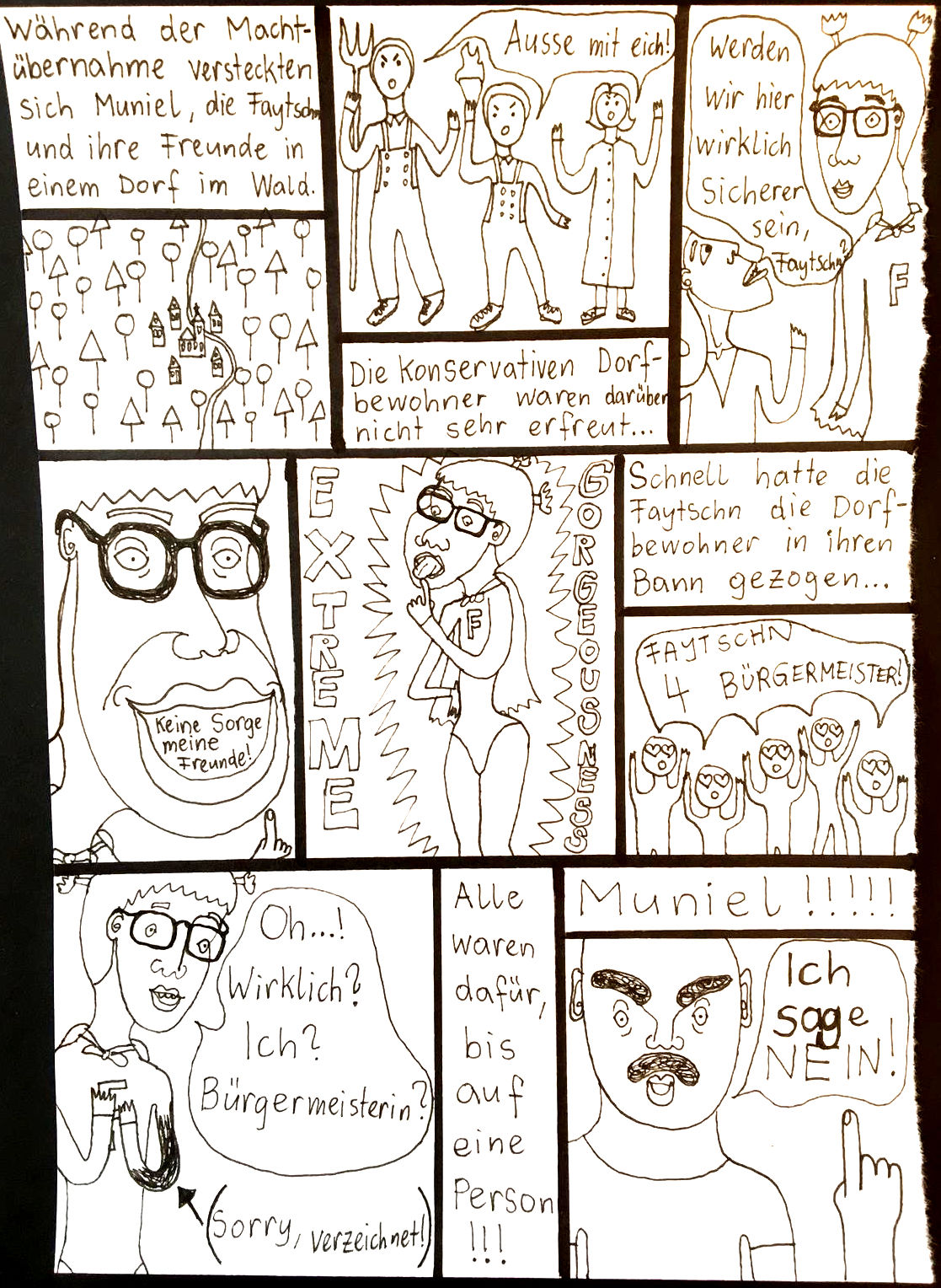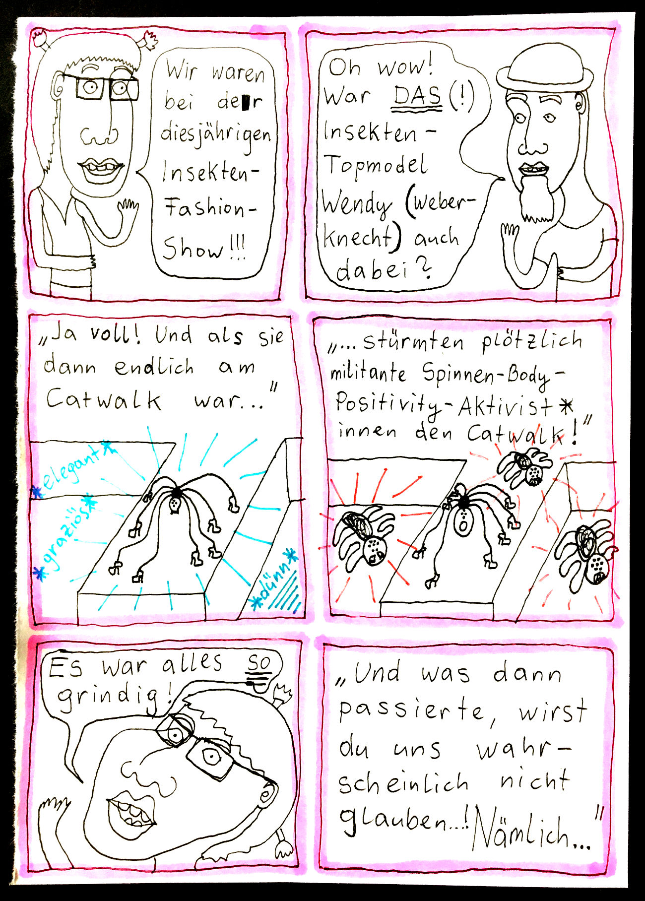 „Faytschn“ und ich hatten die Idee: Wir zeichnen abwechselnd Comicseiten, fotografieren sie und teilen sie in einer WhatsApp-Gruppe.