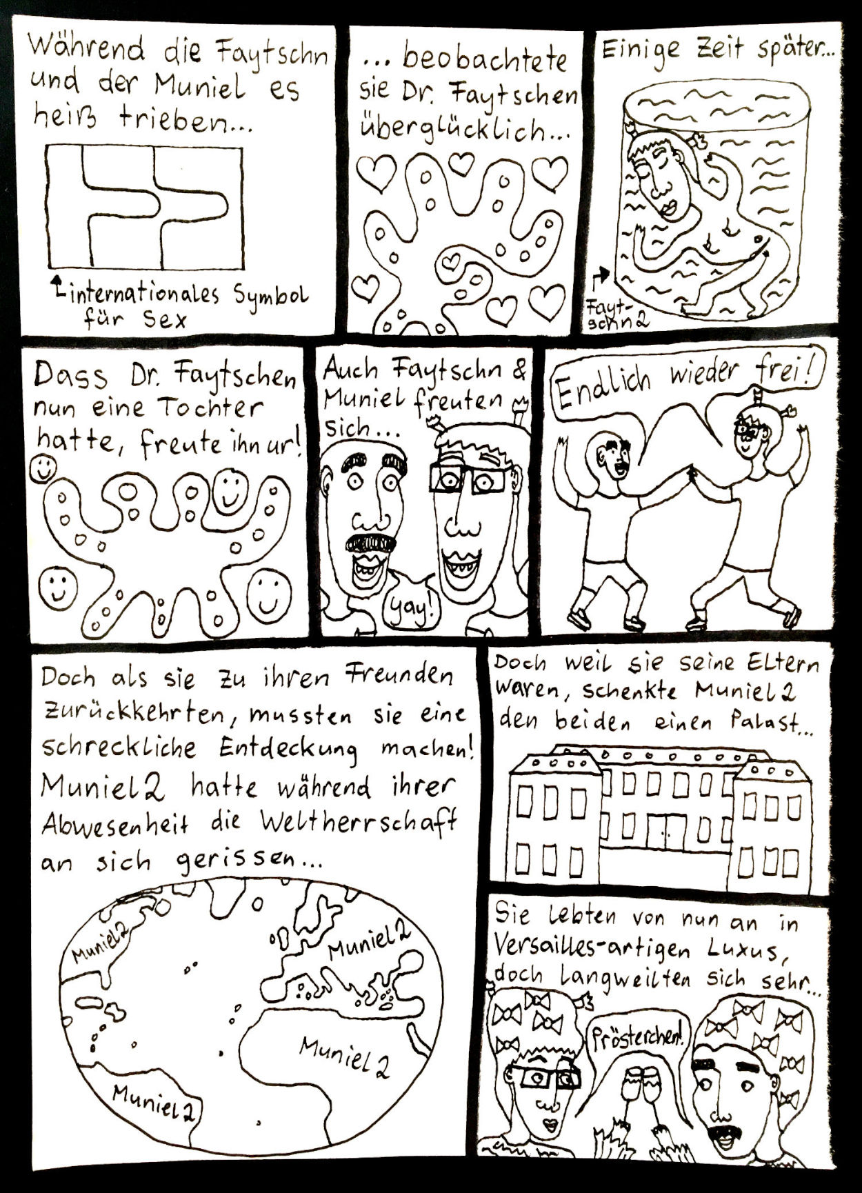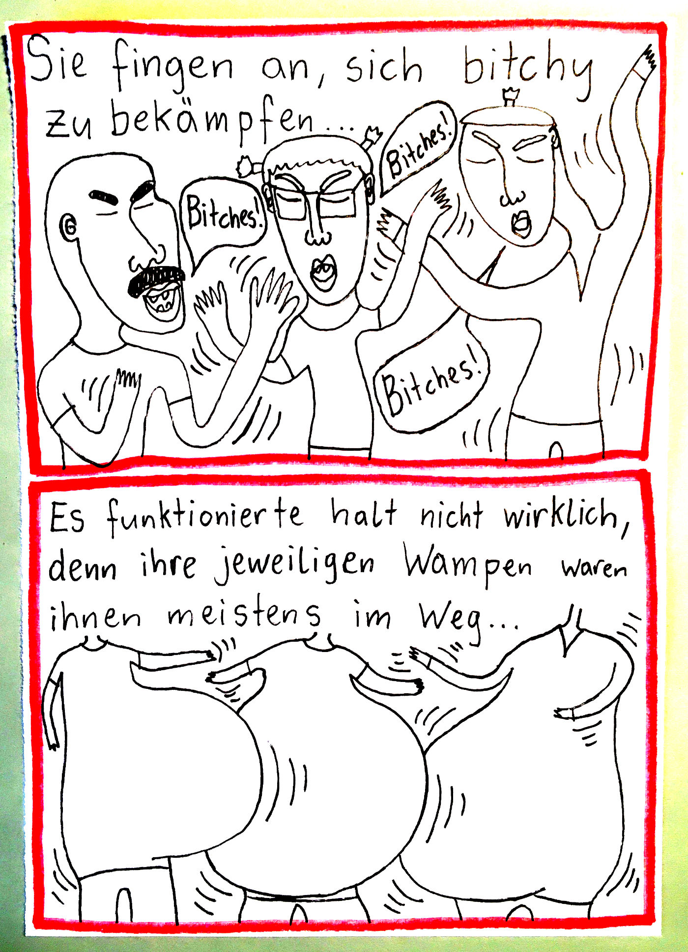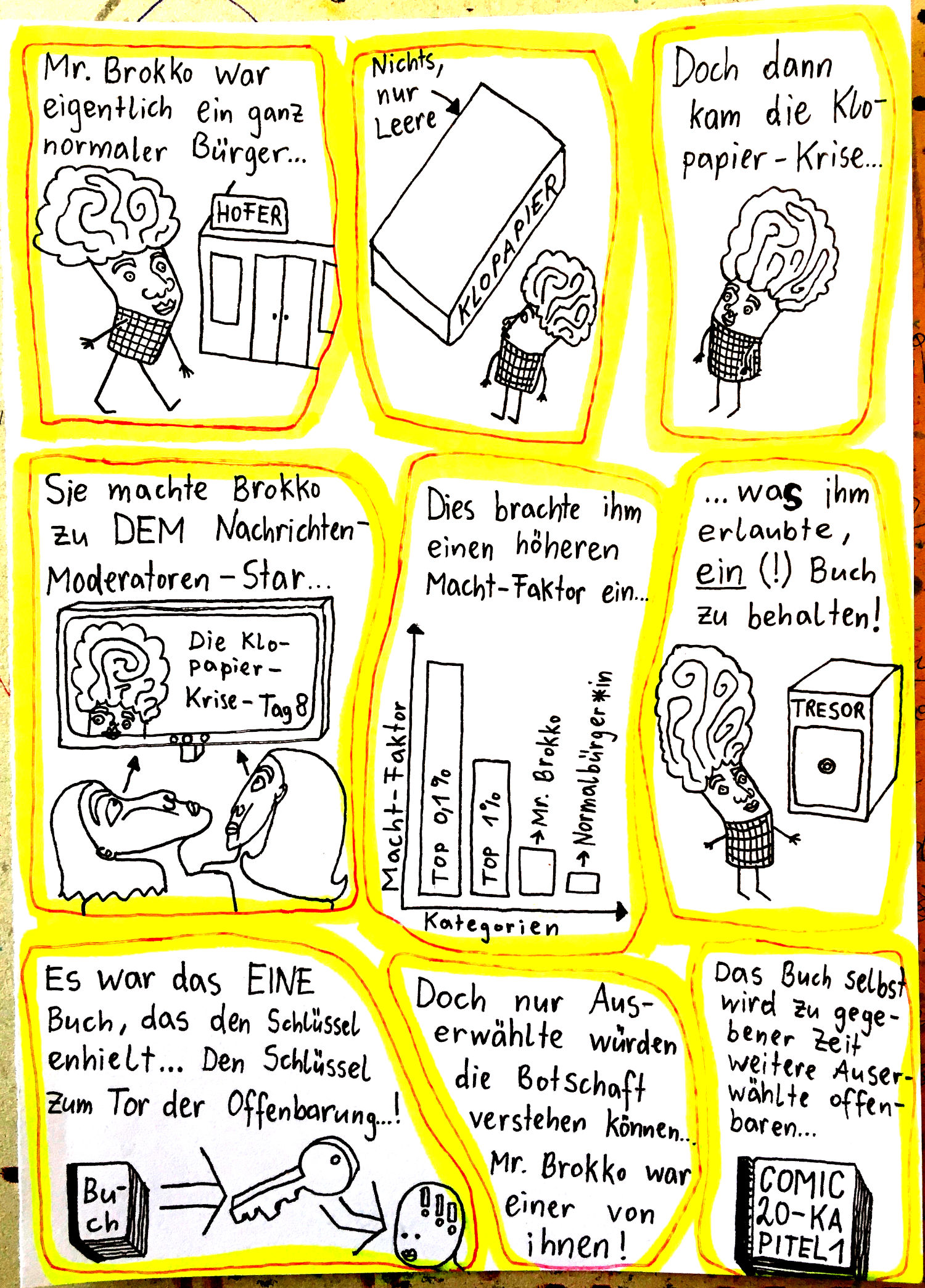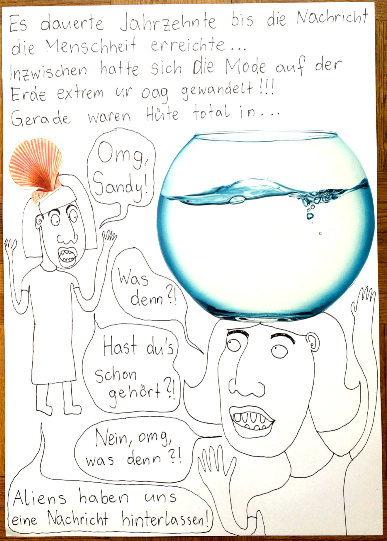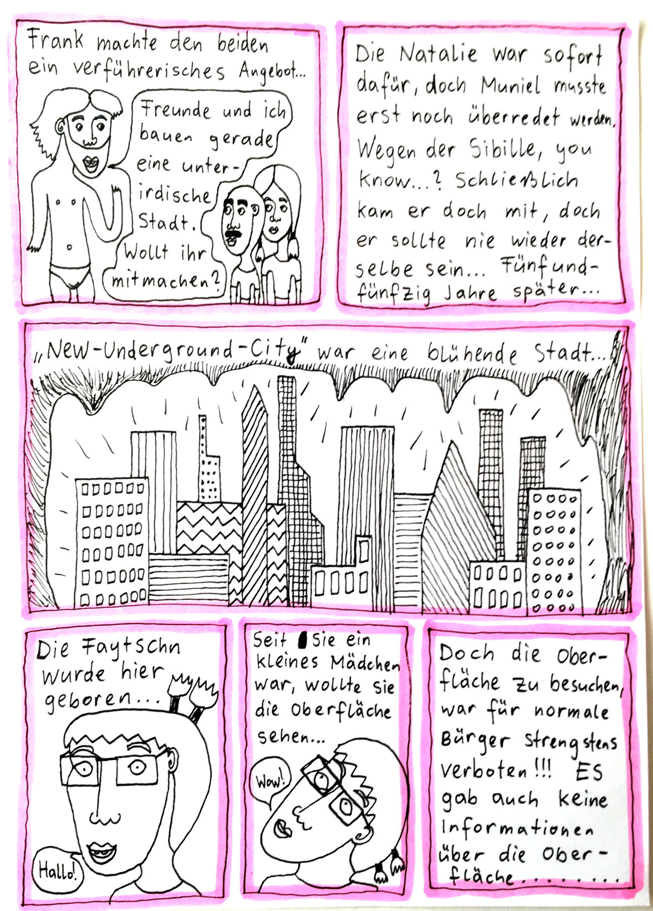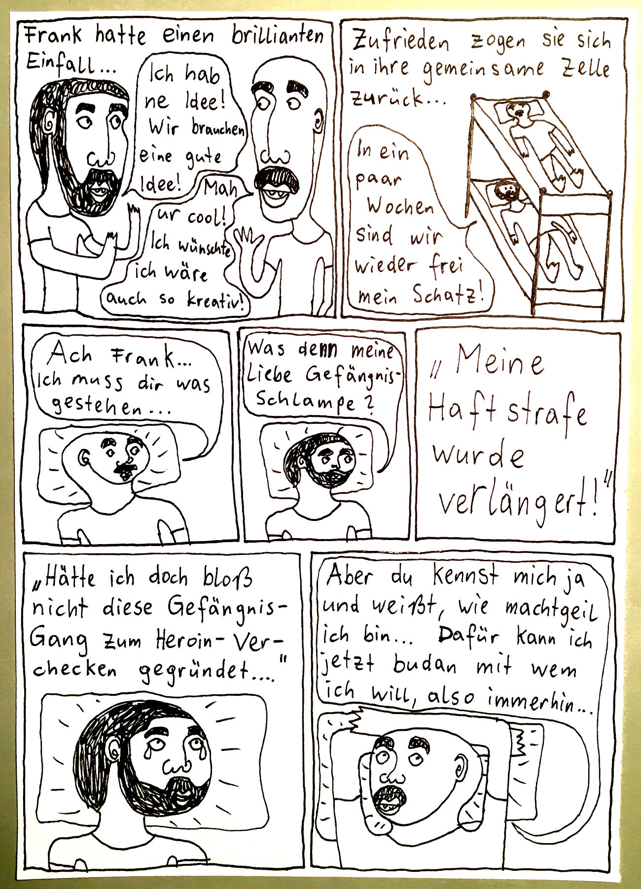 „Faytschn“ und ich hatten die Idee: Wir zeichnen abwechselnd Comicseiten, fotografieren sie und teilen sie in einer WhatsApp-Gruppe.