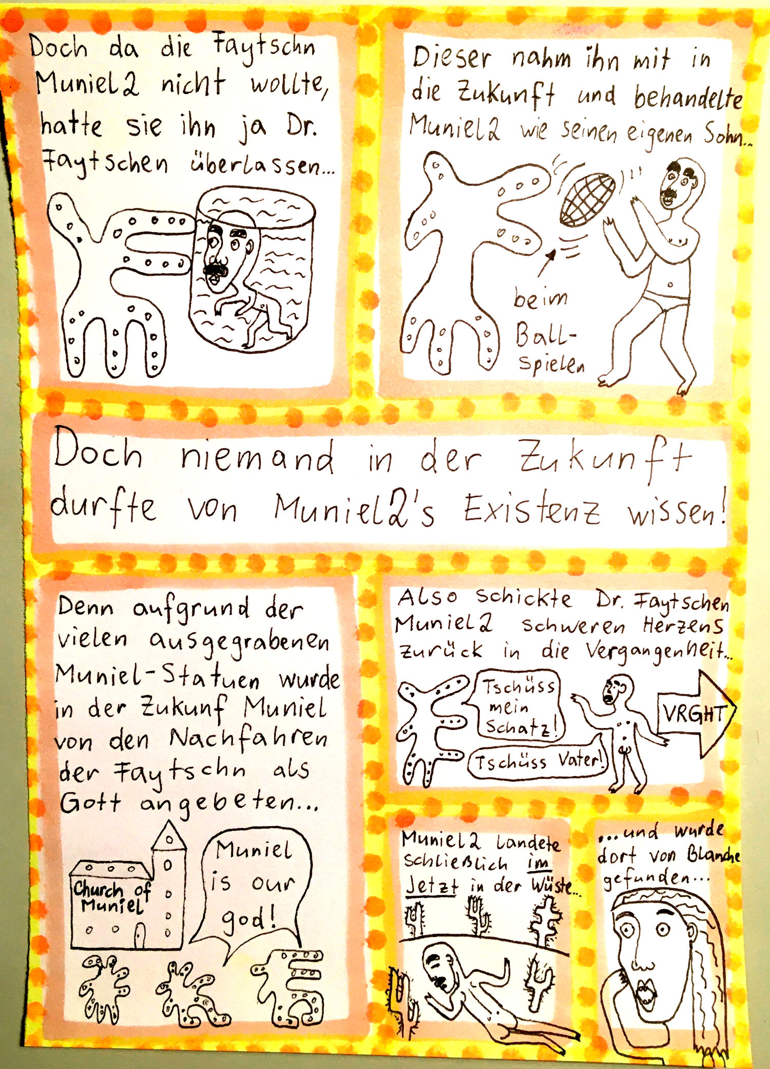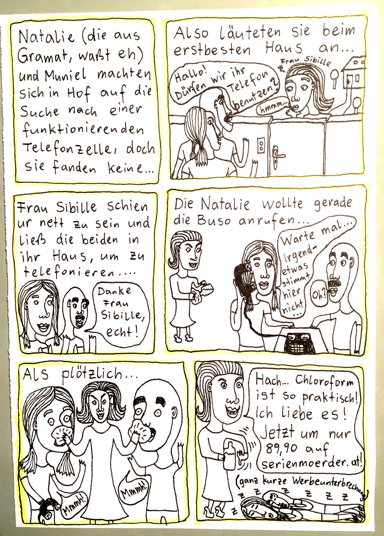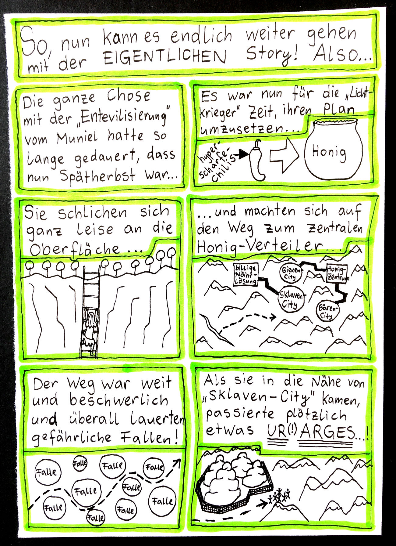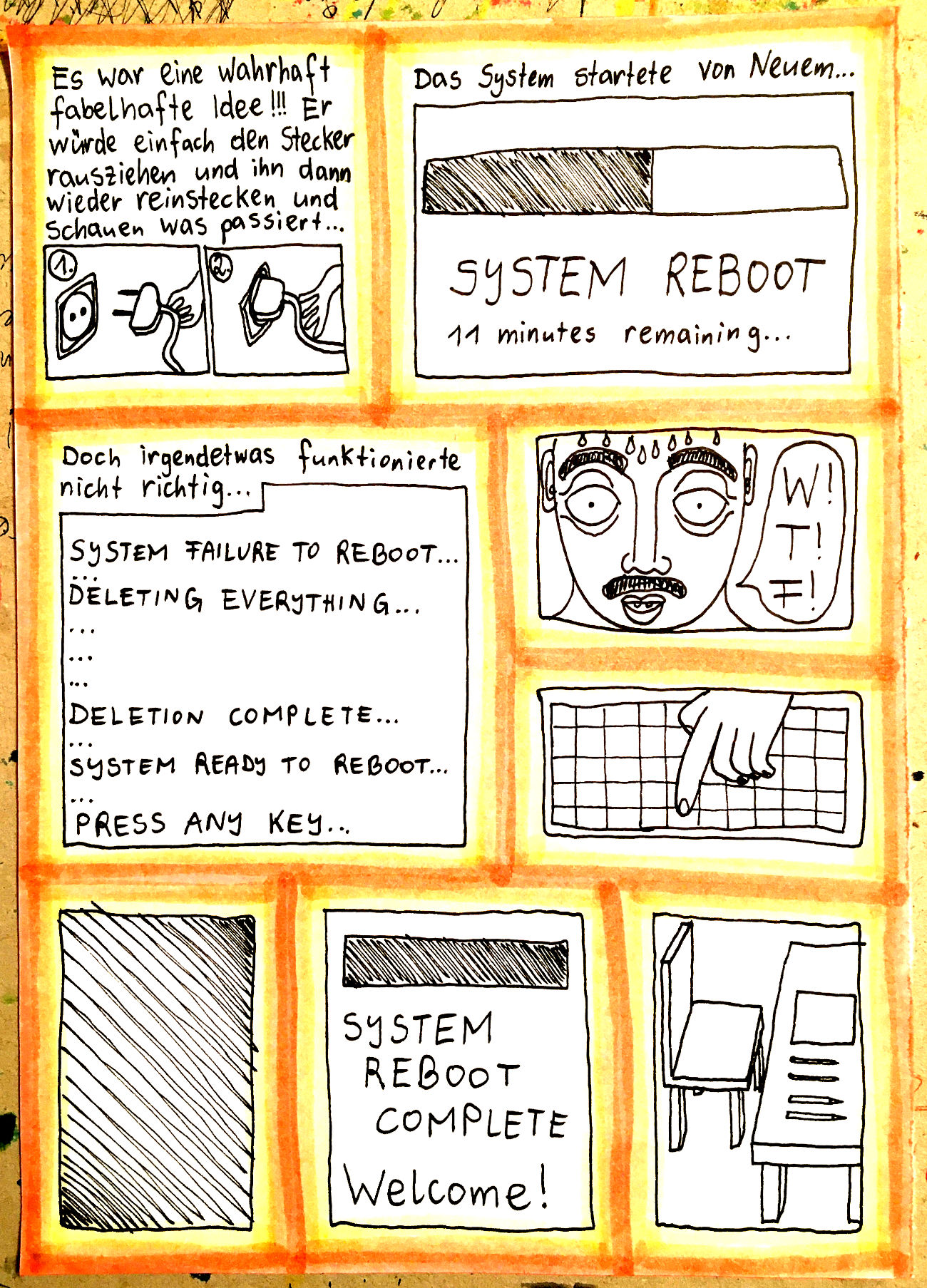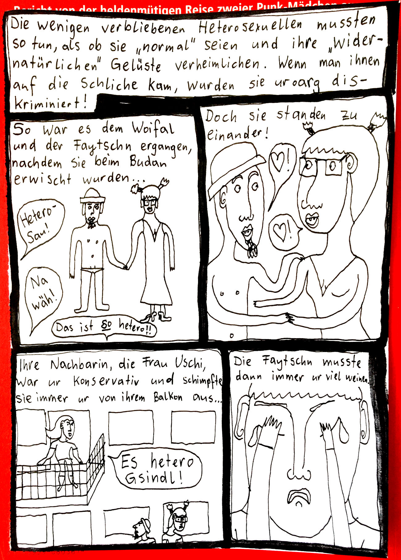 „Faytschn“ und ich hatten die Idee: Wir zeichnen abwechselnd Comicseiten, fotografieren sie und teilen sie in einer WhatsApp-Gruppe.