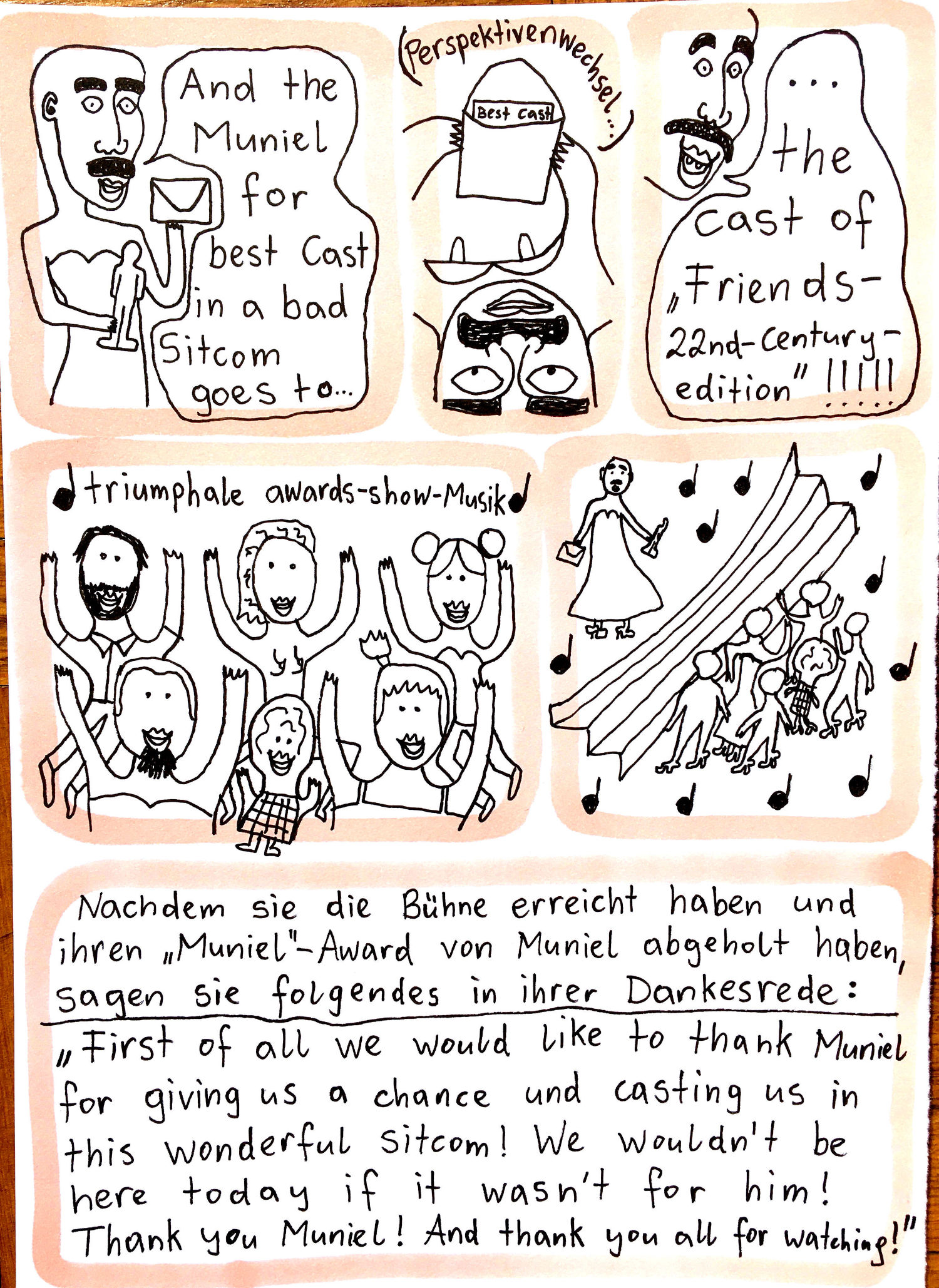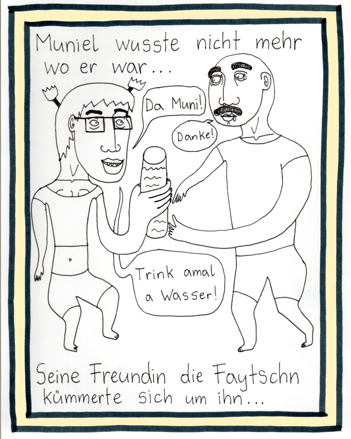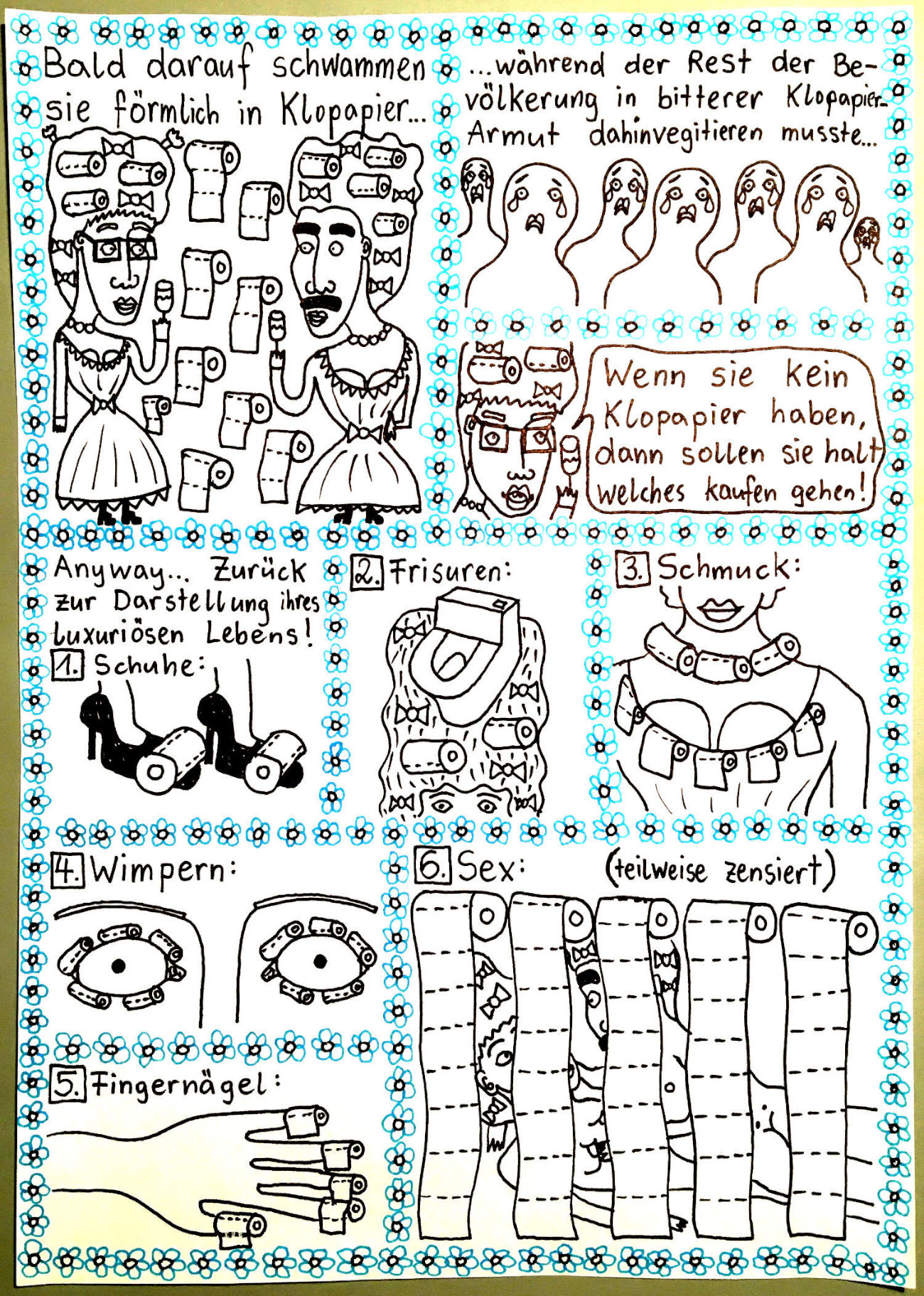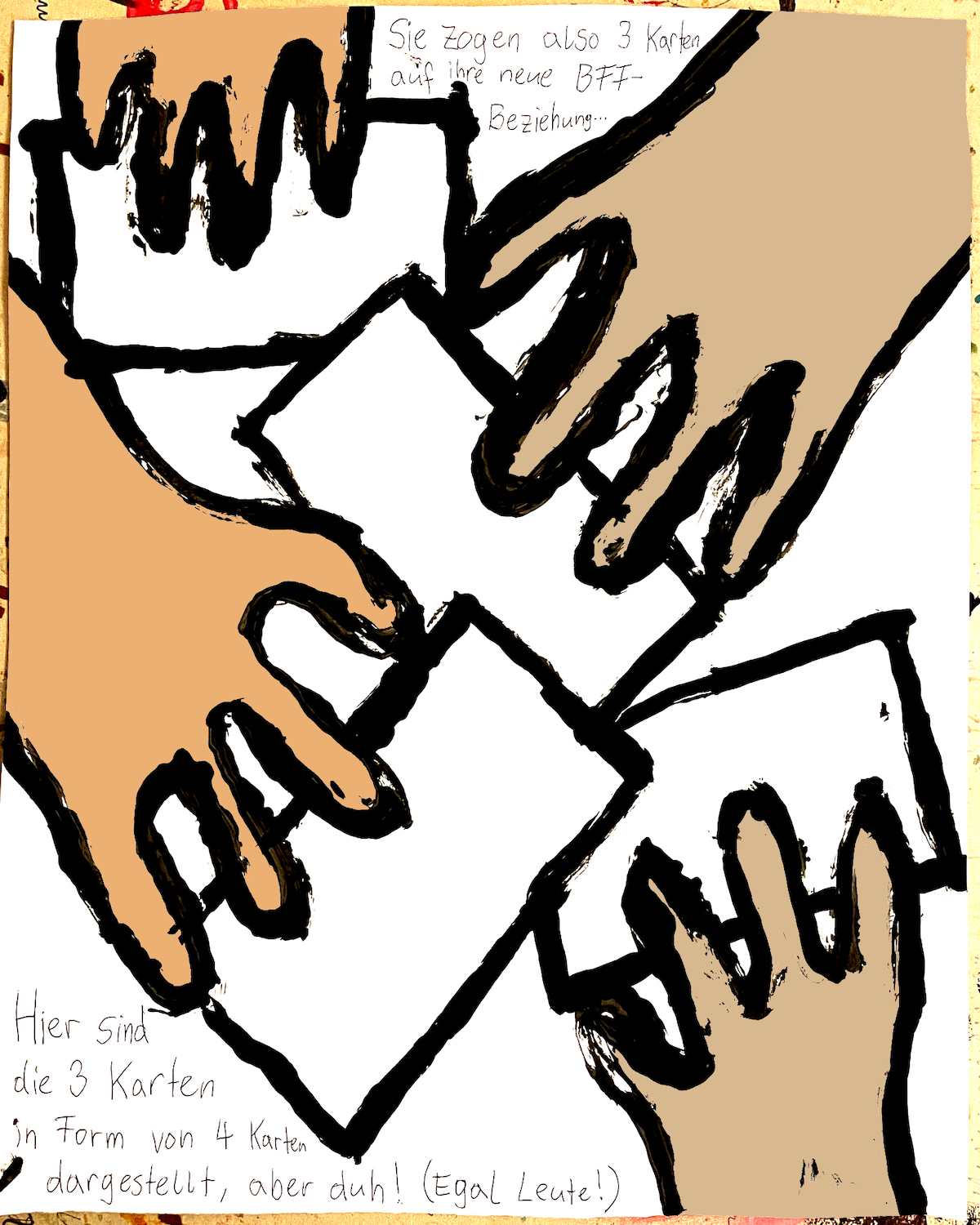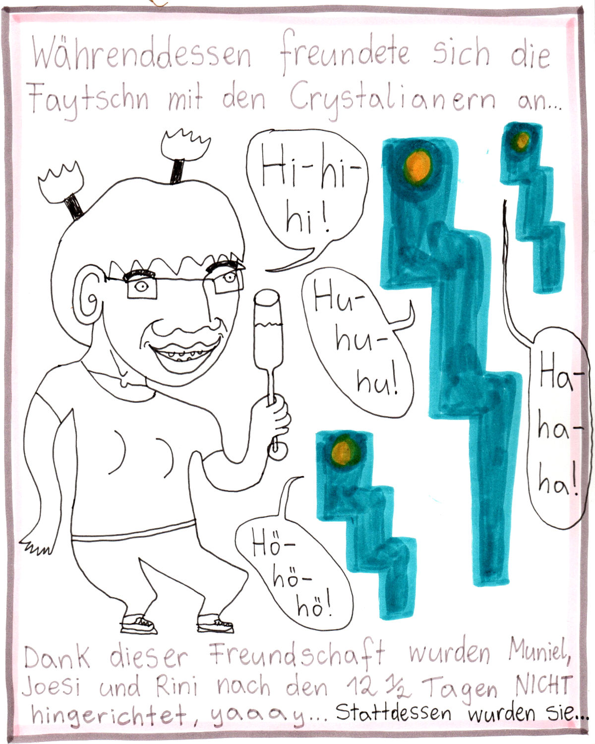„Faytschn“ und ich hatten die Idee: Wir zeichnen abwechselnd Comicseiten, fotografieren sie und teilen sie in einer WhatsApp-Gruppe.