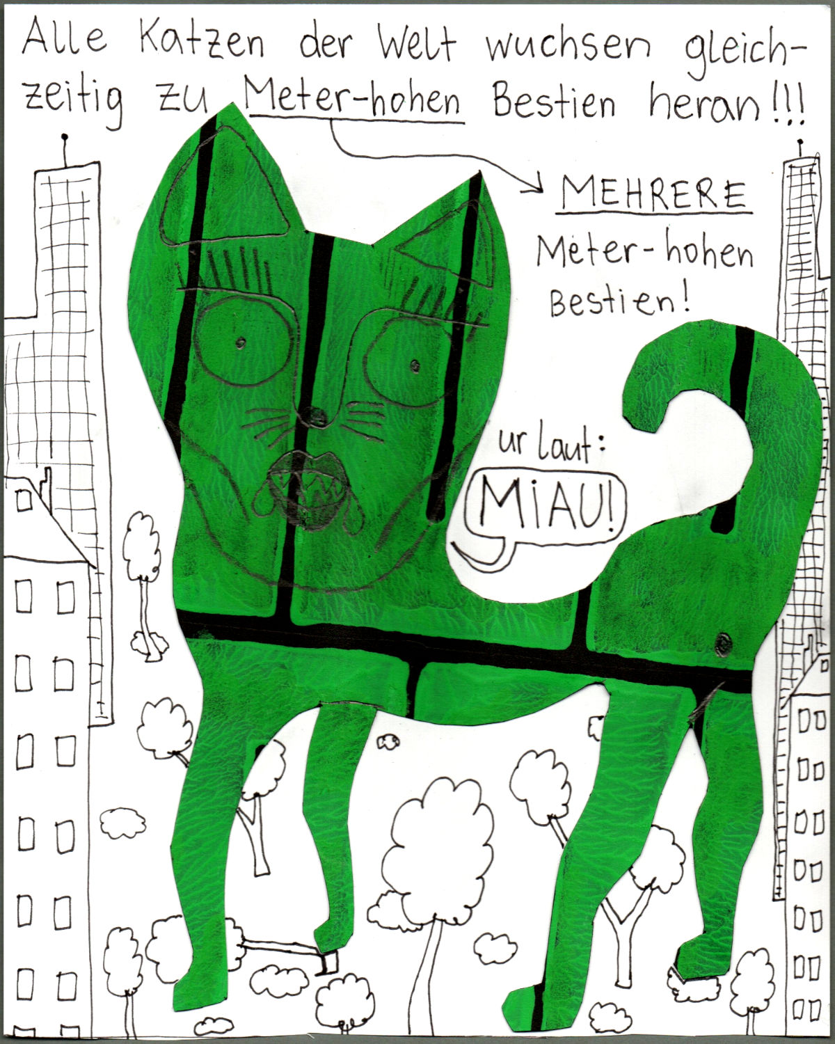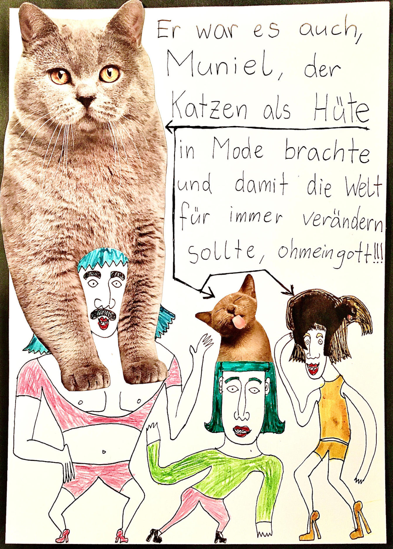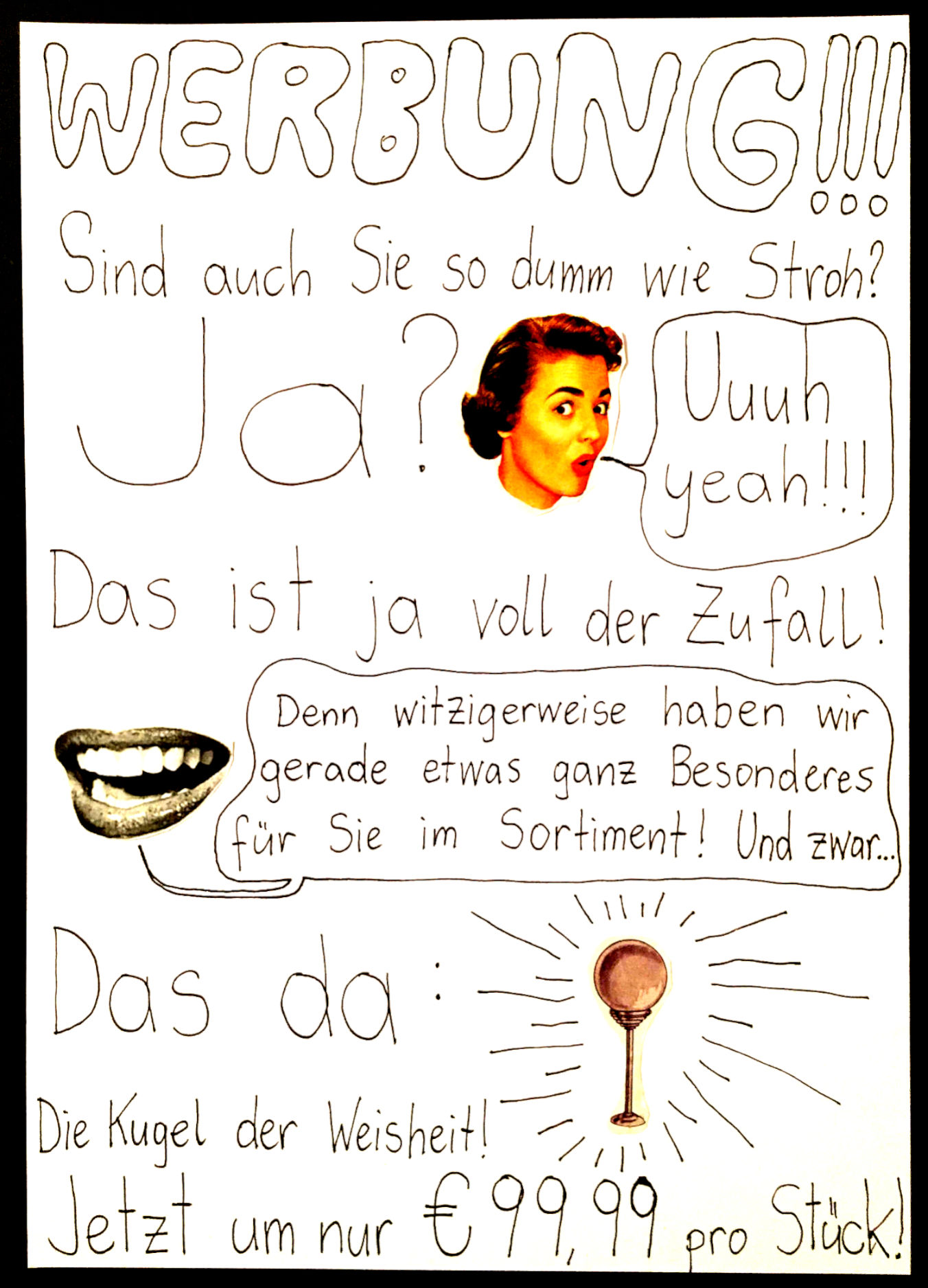 Los ging’s beim Collagen-Workshop von „Faytschn“ in der Buchhandlung Grohmann in Zwettl im August 2021, woraus dann diese absurd-coolen Collagen-Comics entstanden sind!