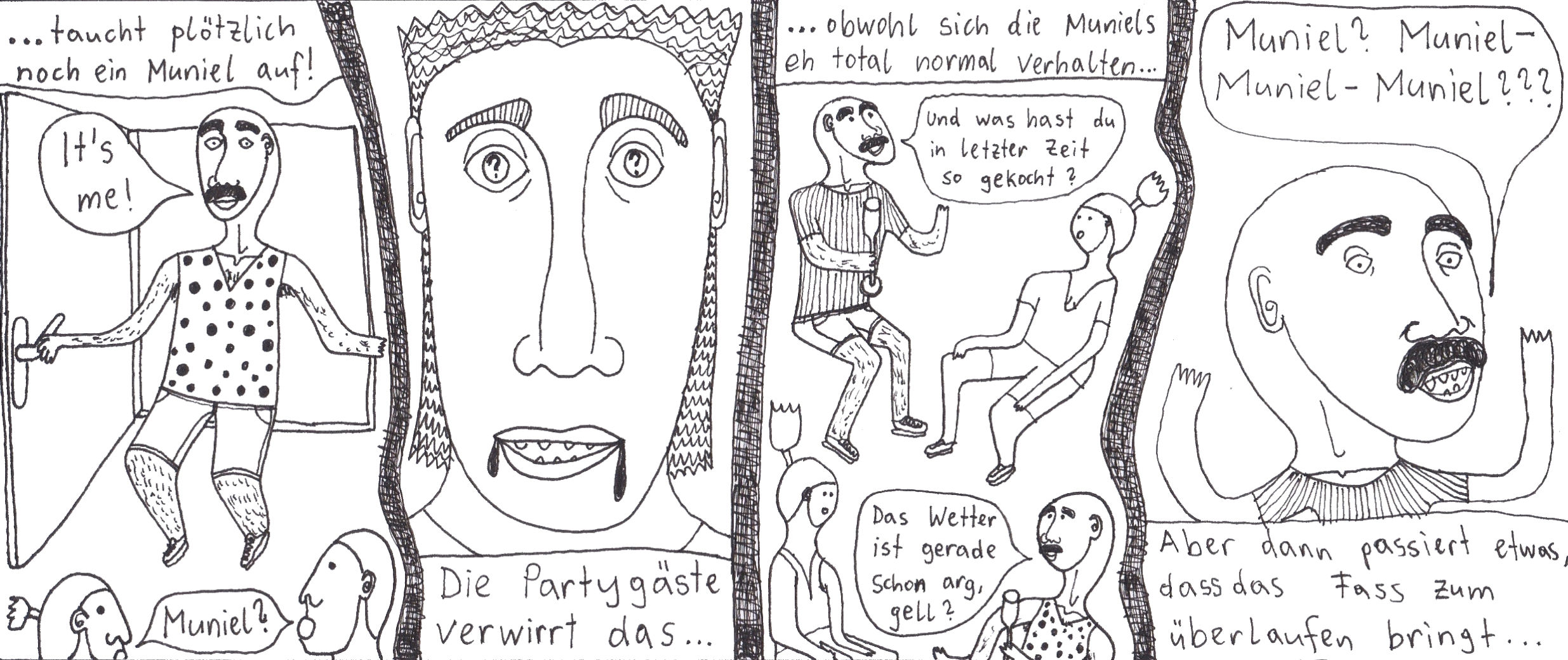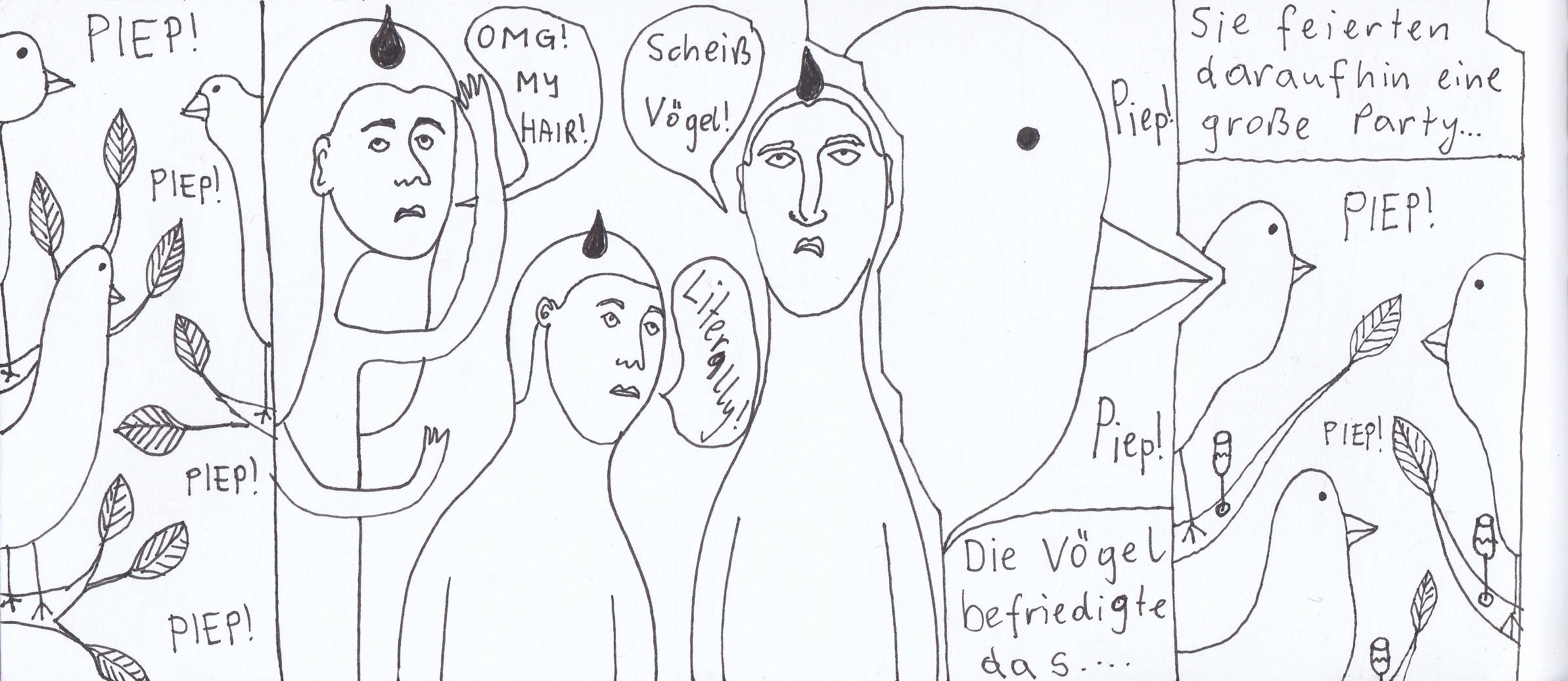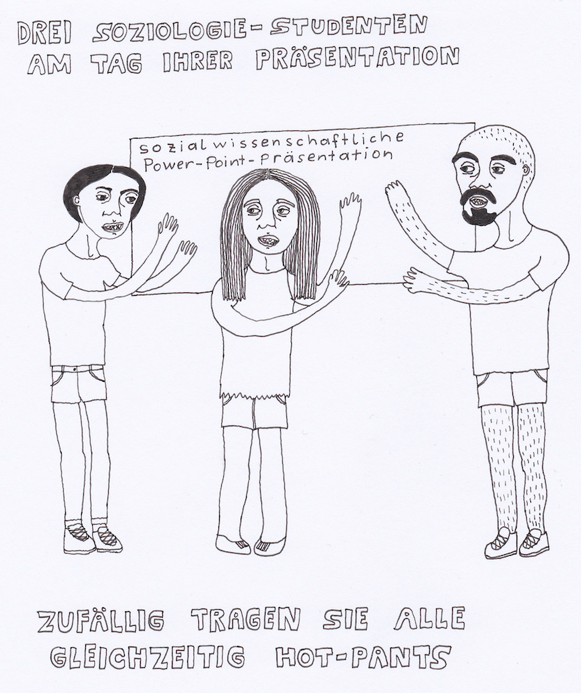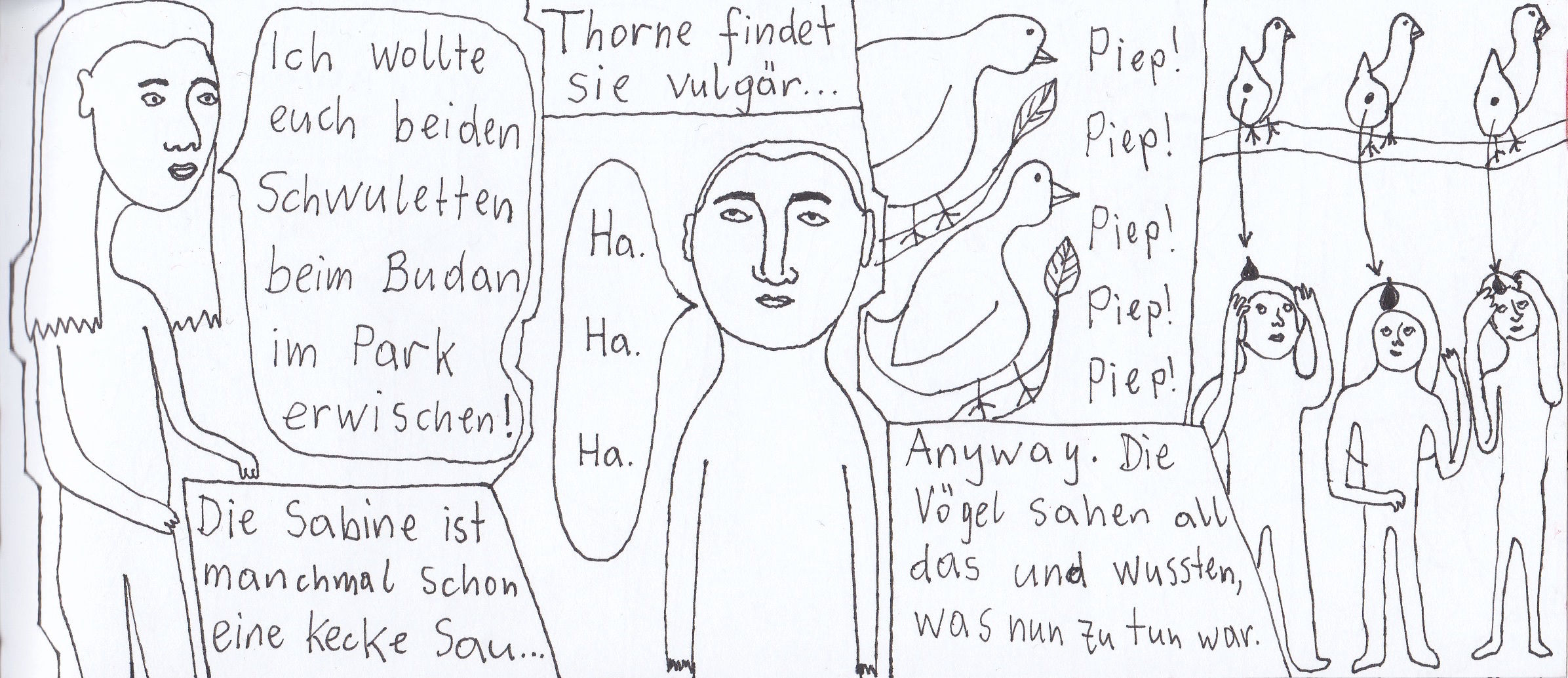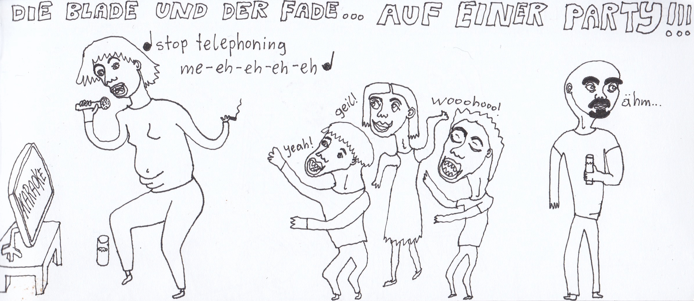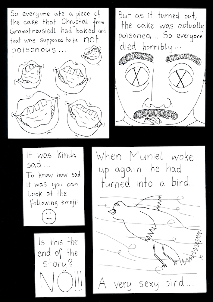 Zum Schluss noch die letzten drei Seiten meines ersten Comic-Zines, weil sie einerseits ein schönes, schräges Ende bilden und andererseits halt einfach geil ausschauen, Ha!