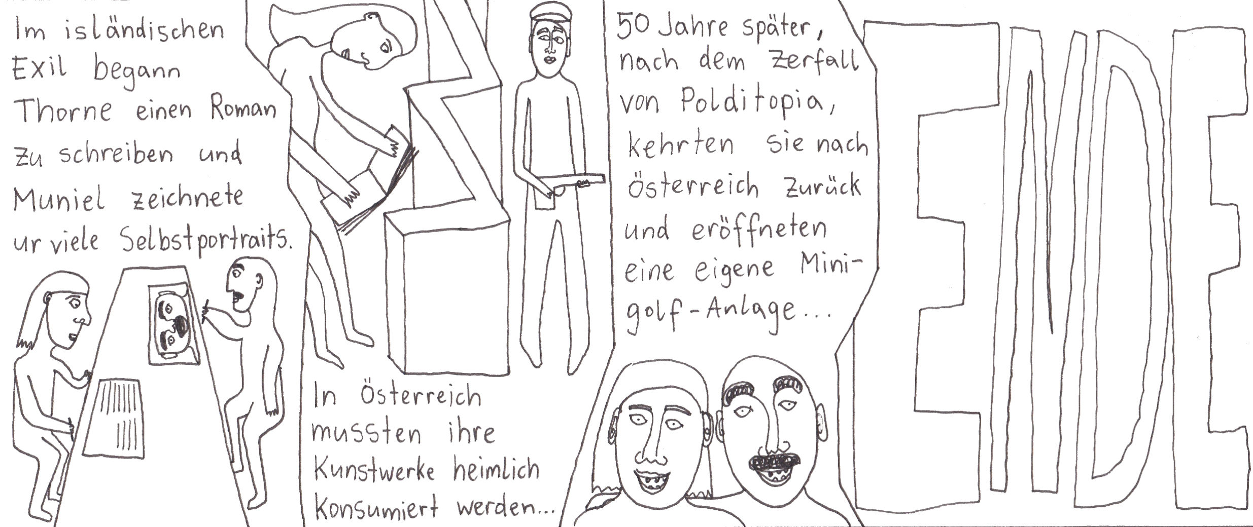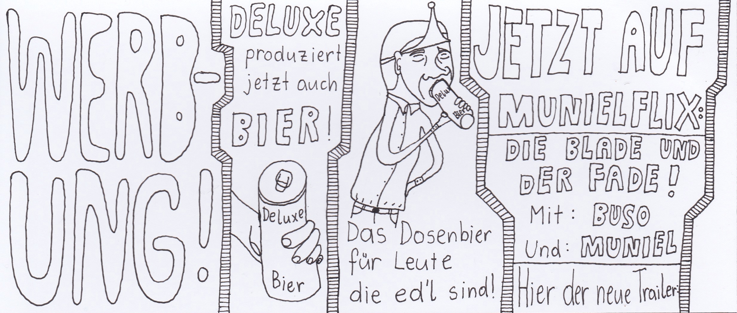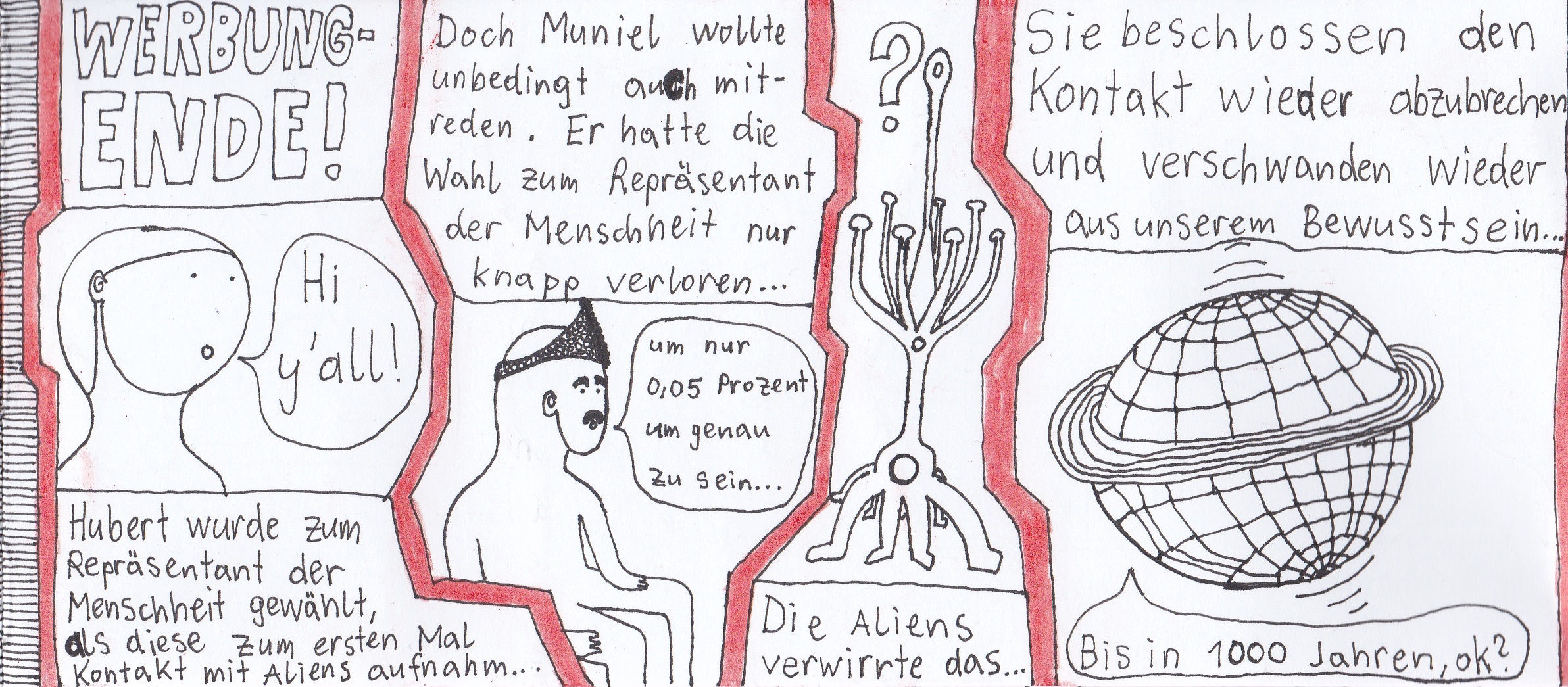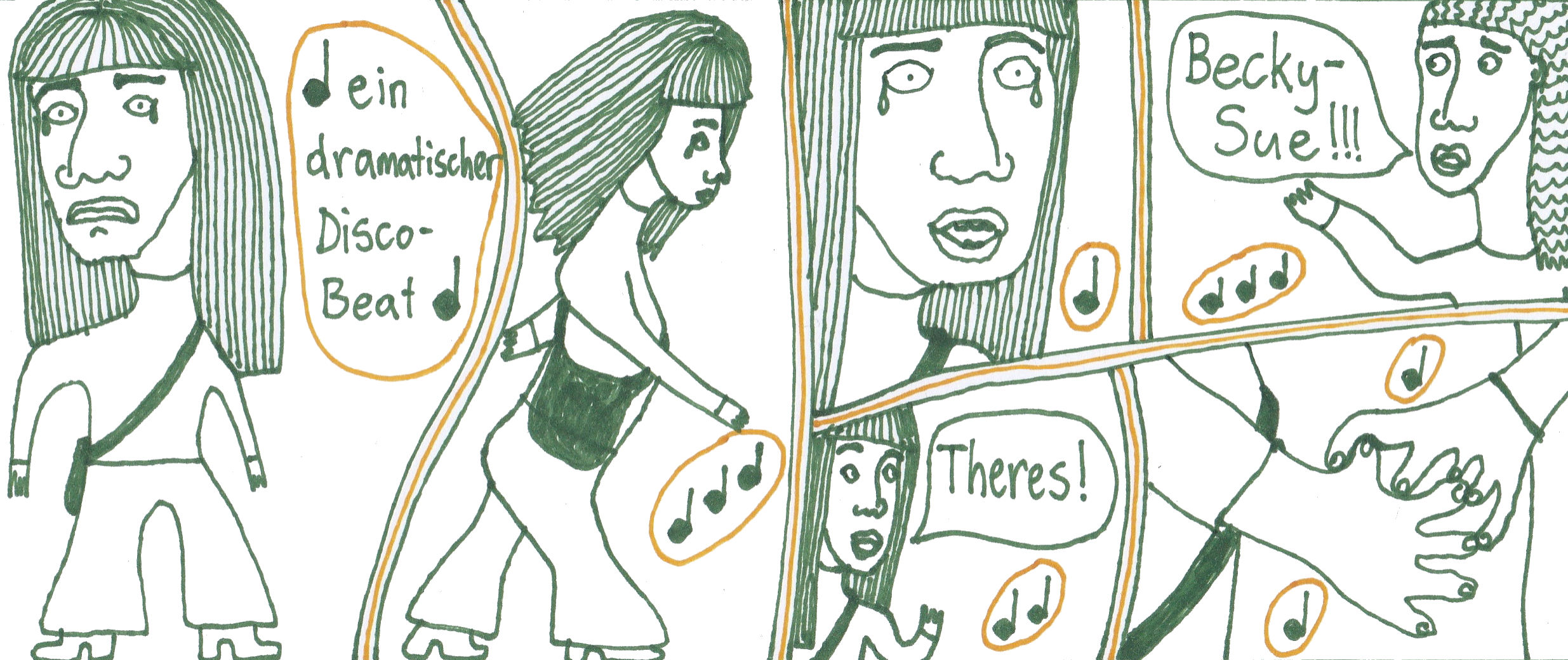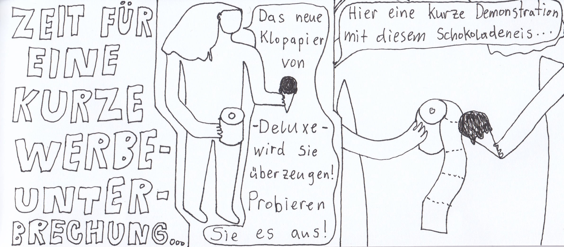 Zum Schluss noch die letzten drei Seiten meines ersten Comic-Zines, weil sie einerseits ein schönes, schräges Ende bilden und andererseits halt einfach geil ausschauen, Ha!