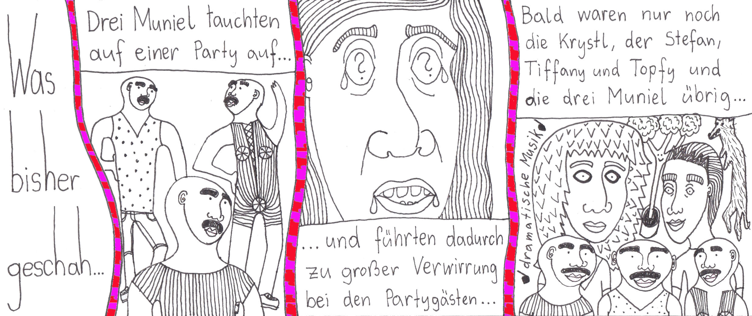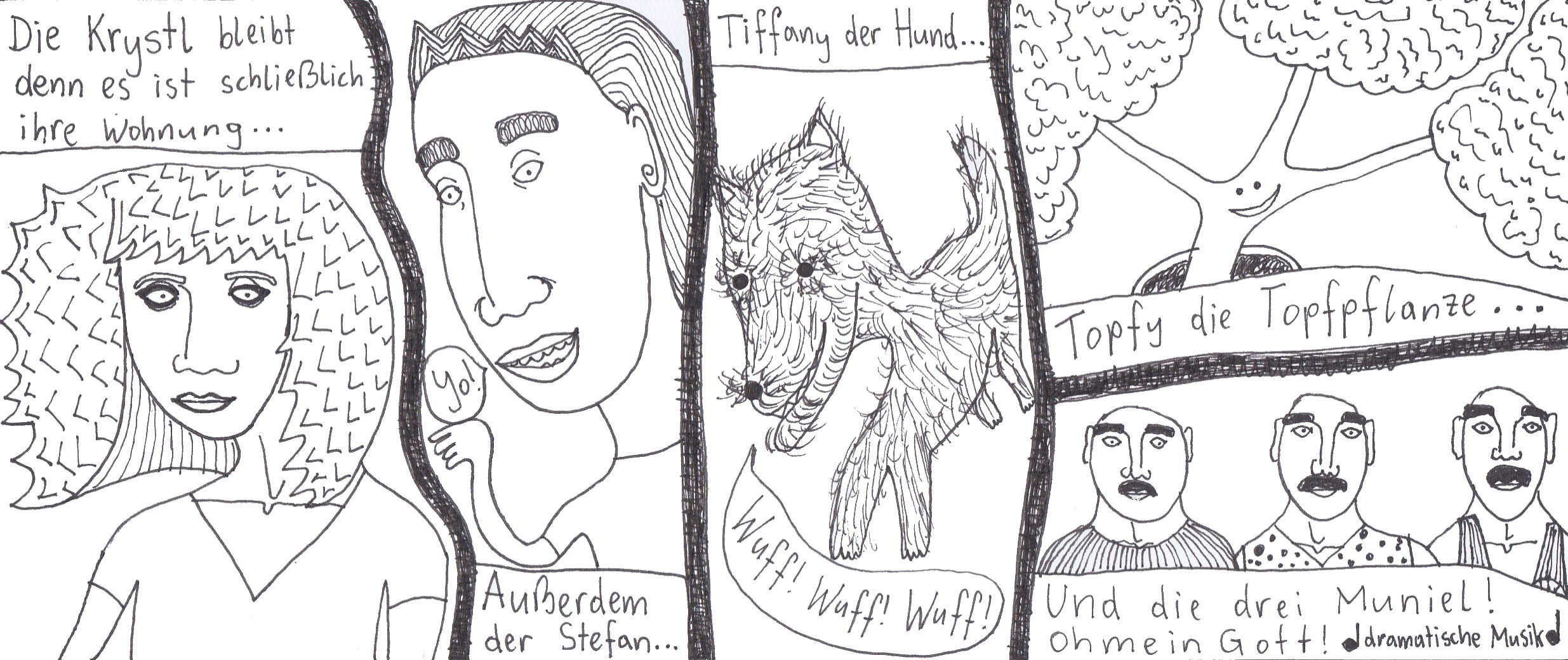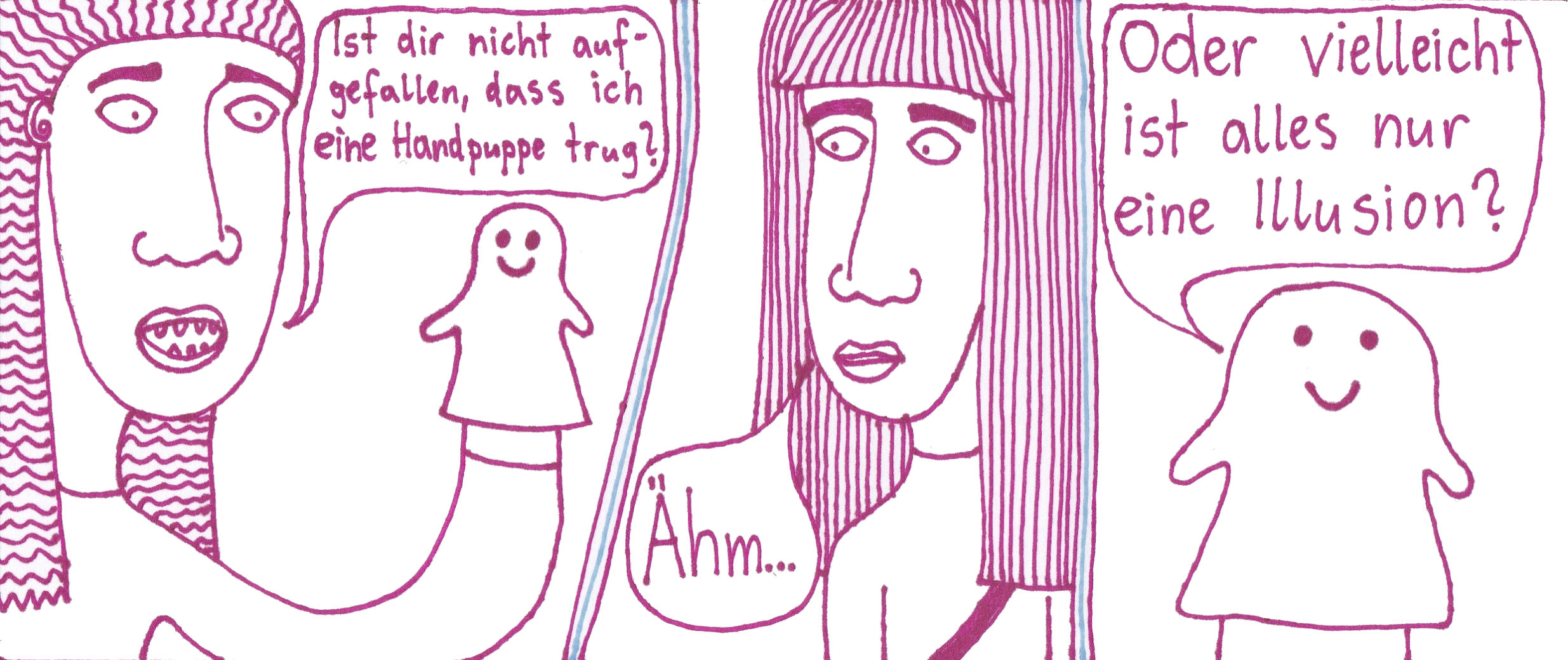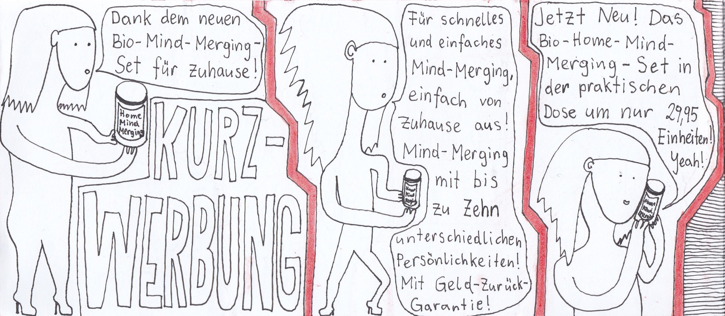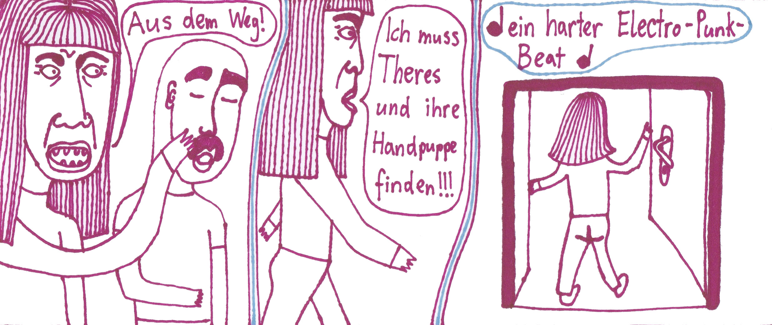 Zum Schluss noch die letzten drei Seiten meines ersten Comic-Zines, weil sie einerseits ein schönes, schräges Ende bilden und andererseits halt einfach geil ausschauen, Ha!