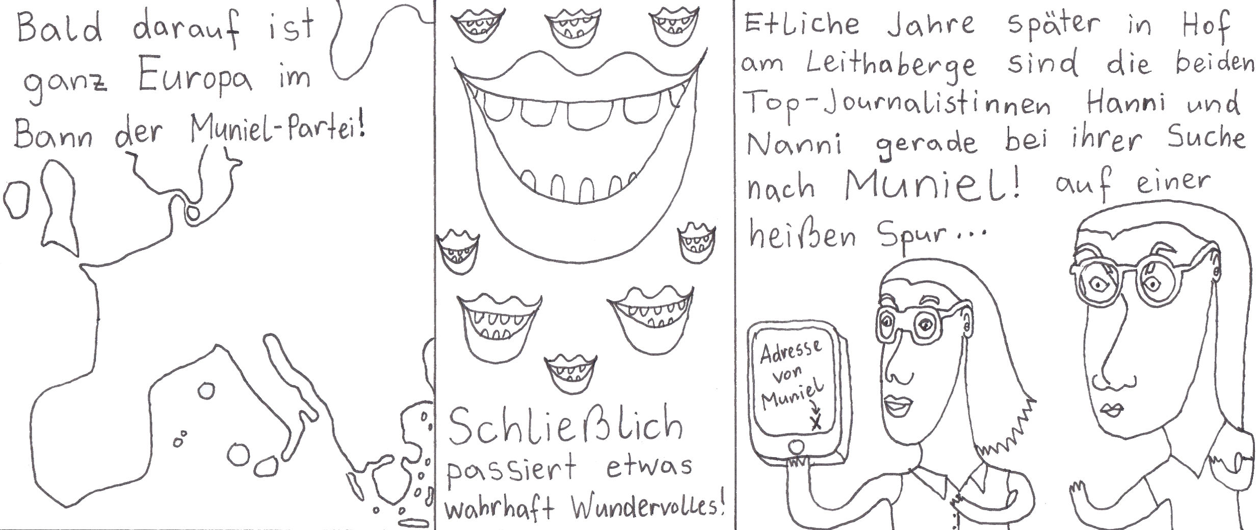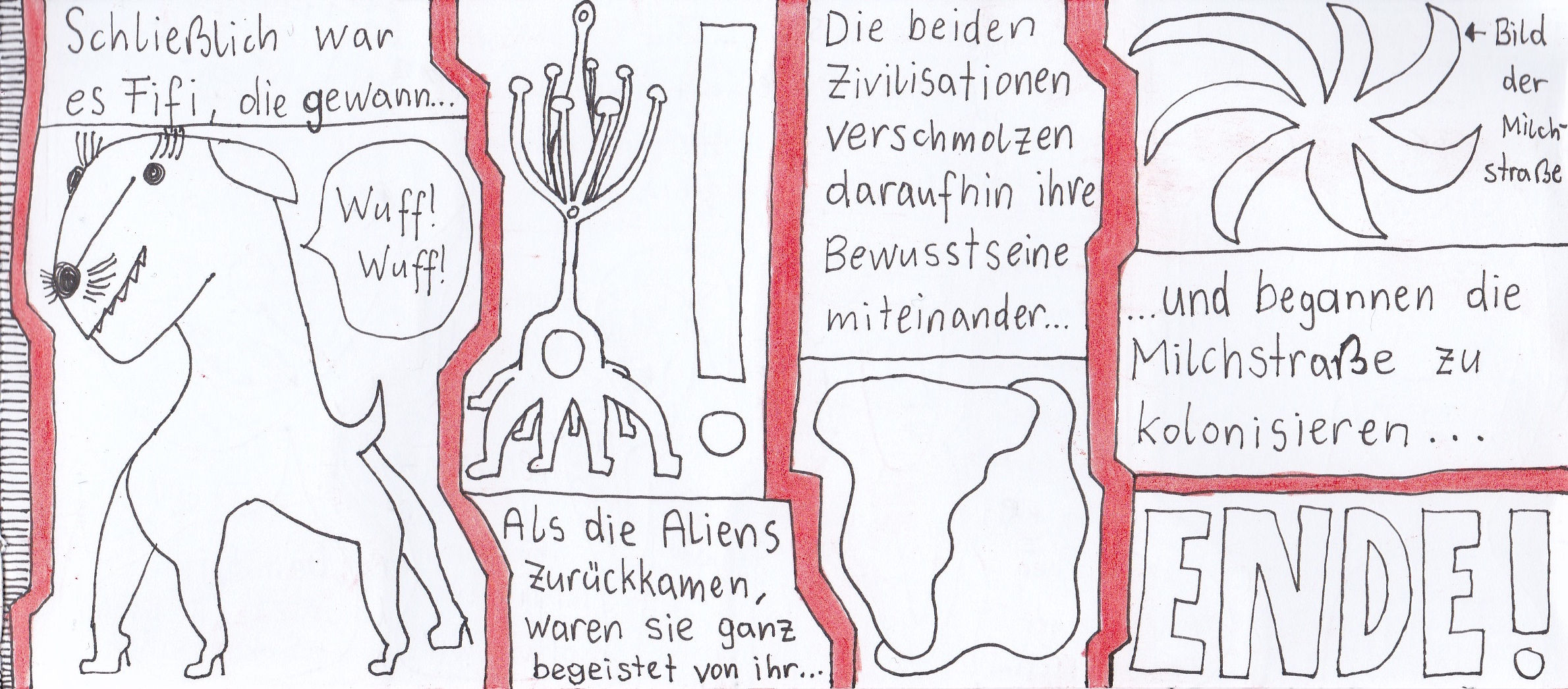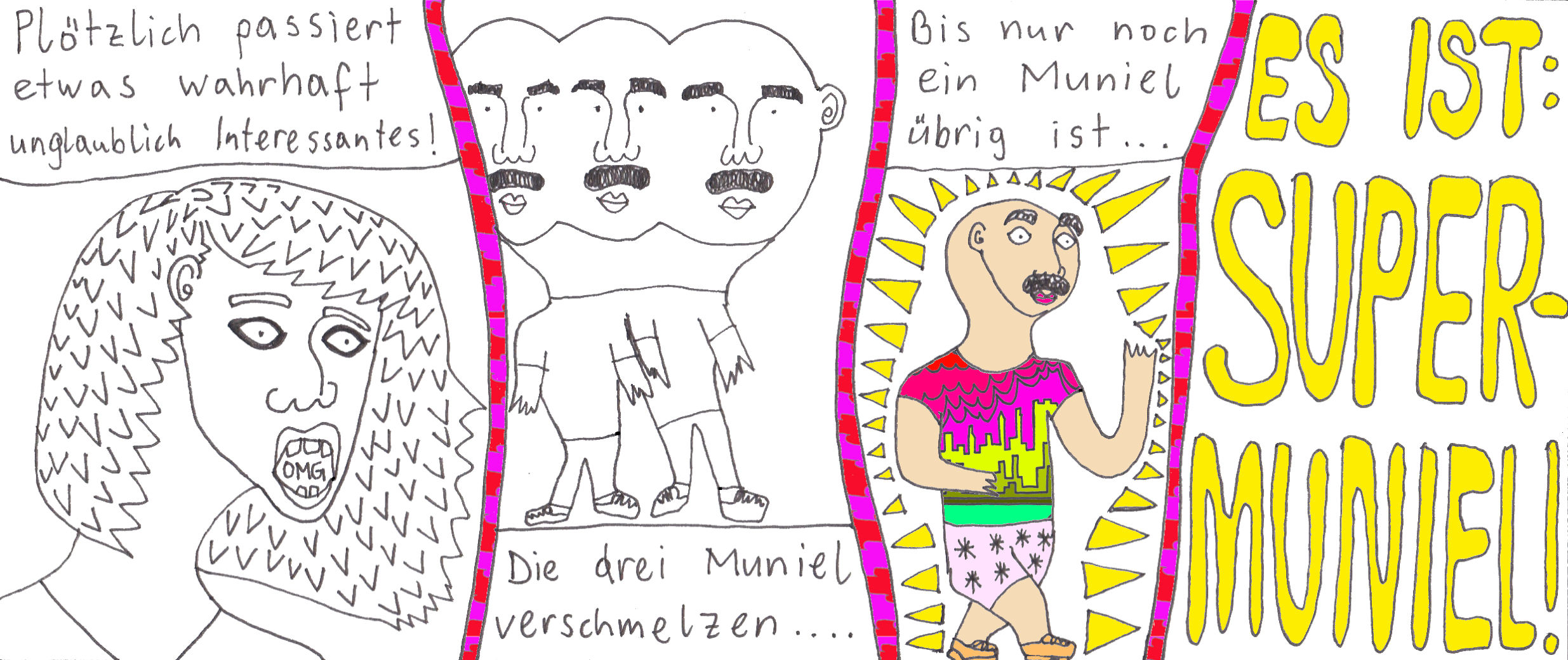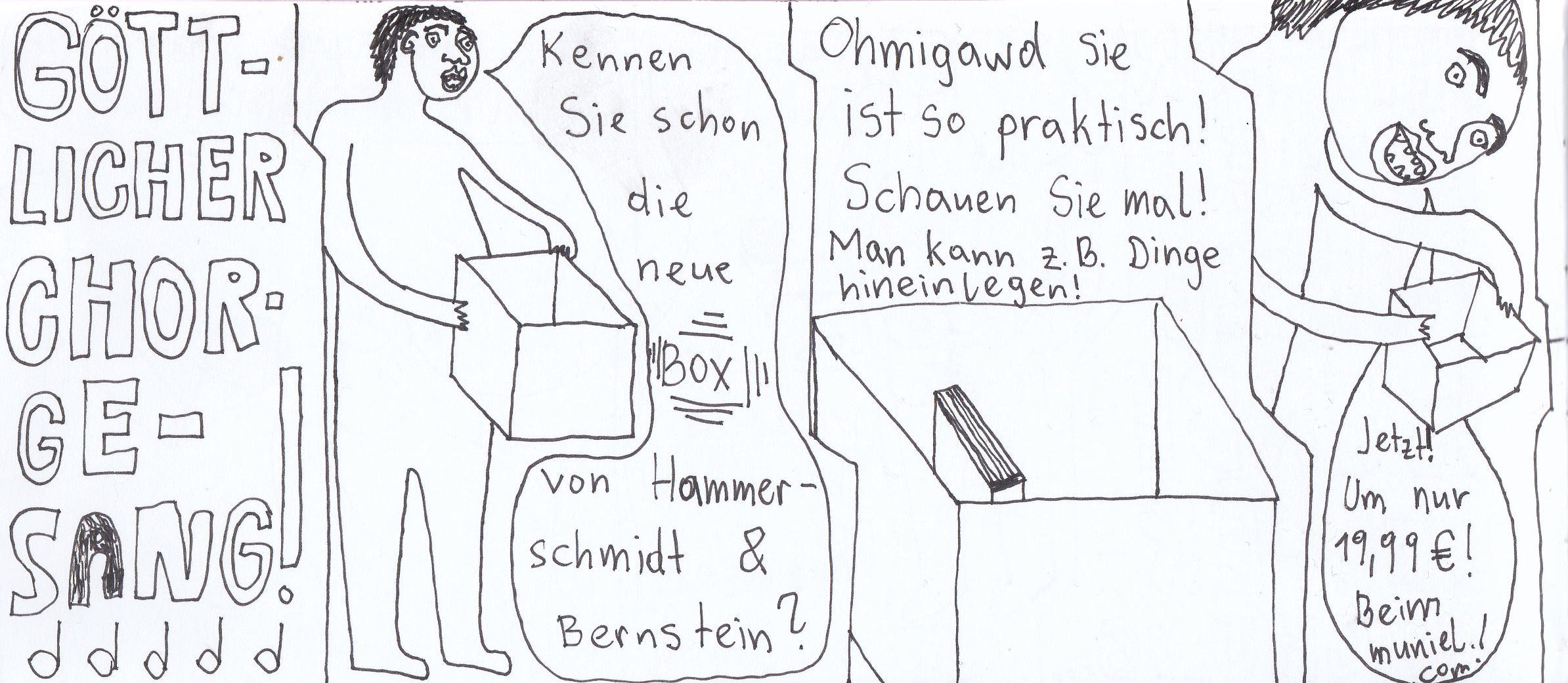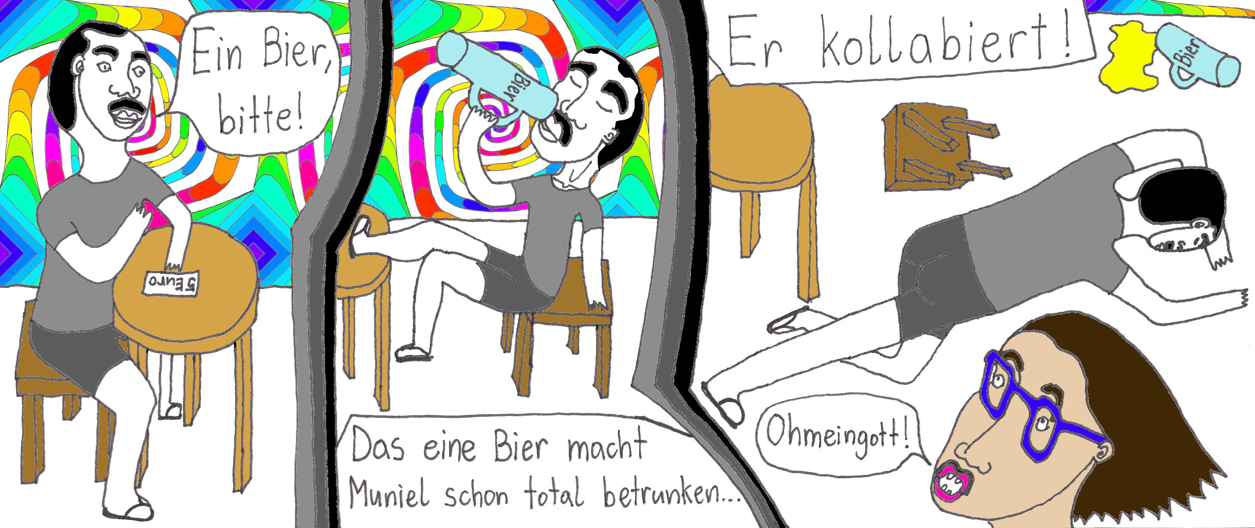 Zum Schluss noch die letzten drei Seiten meines ersten Comic-Zines, weil sie einerseits ein schönes, schräges Ende bilden und andererseits halt einfach geil ausschauen, Ha!