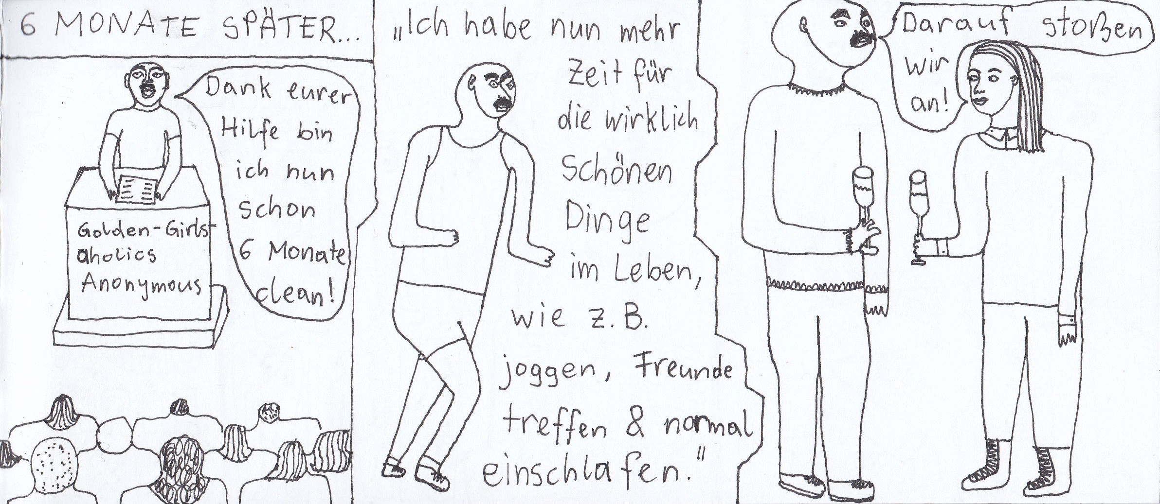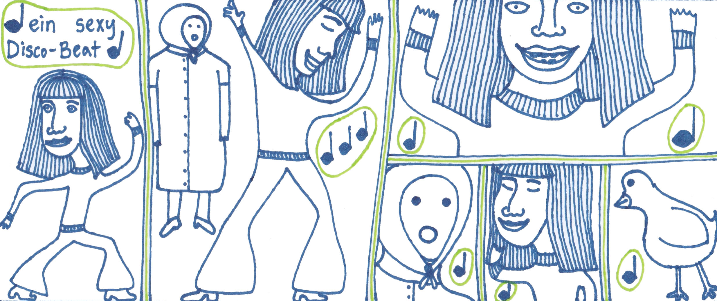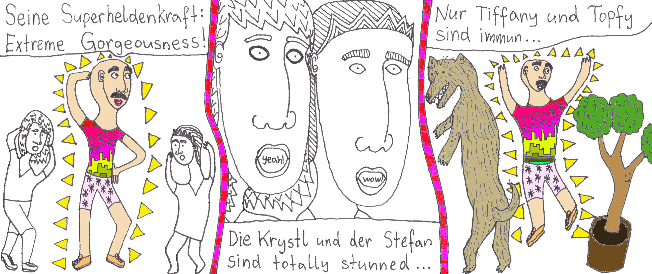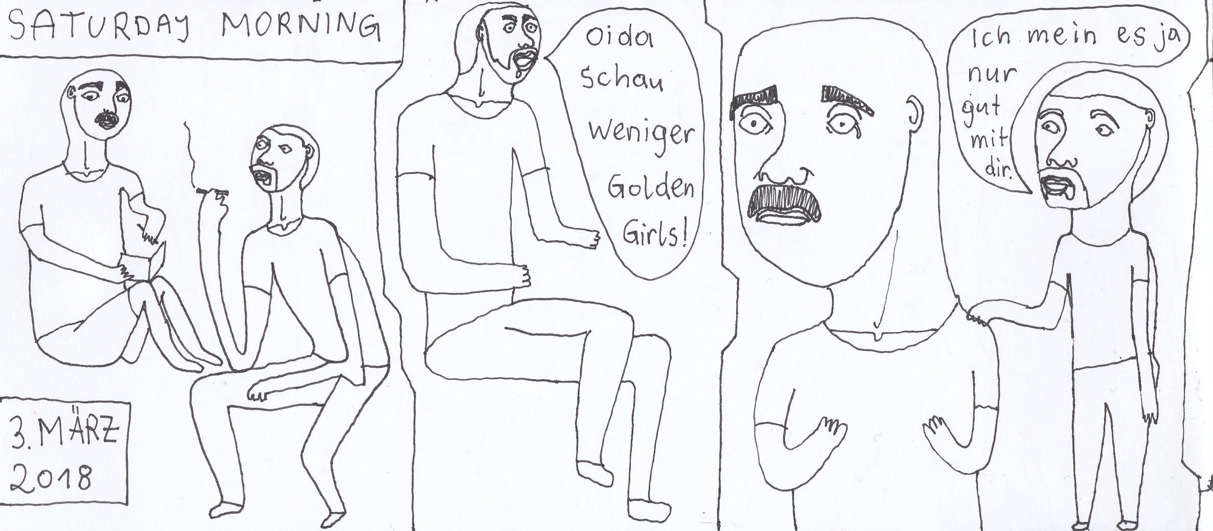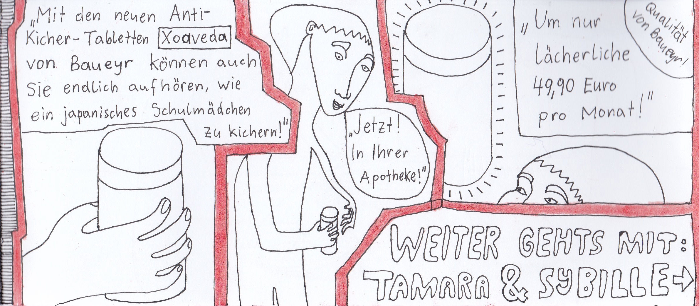 Zum Schluss noch die letzten drei Seiten meines ersten Comic-Zines, weil sie einerseits ein schönes, schräges Ende bilden und andererseits halt einfach geil ausschauen, Ha!