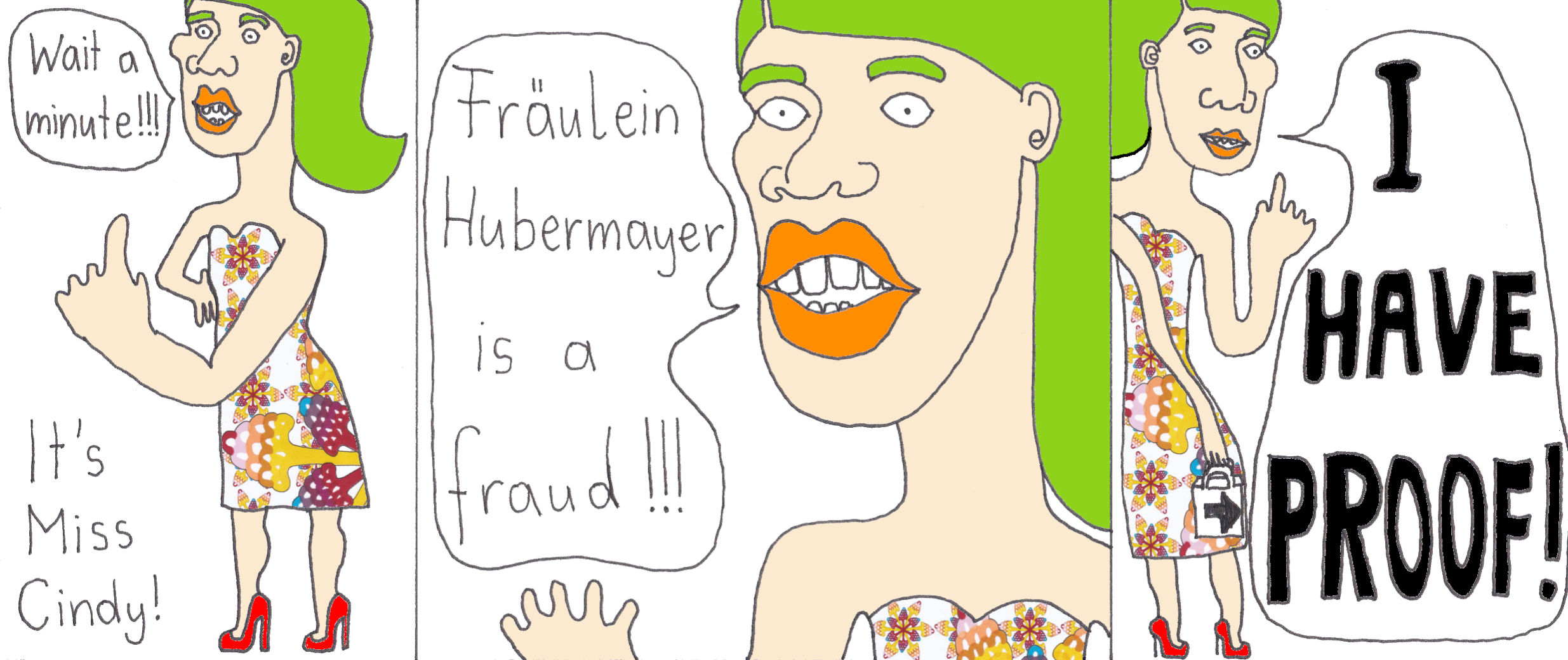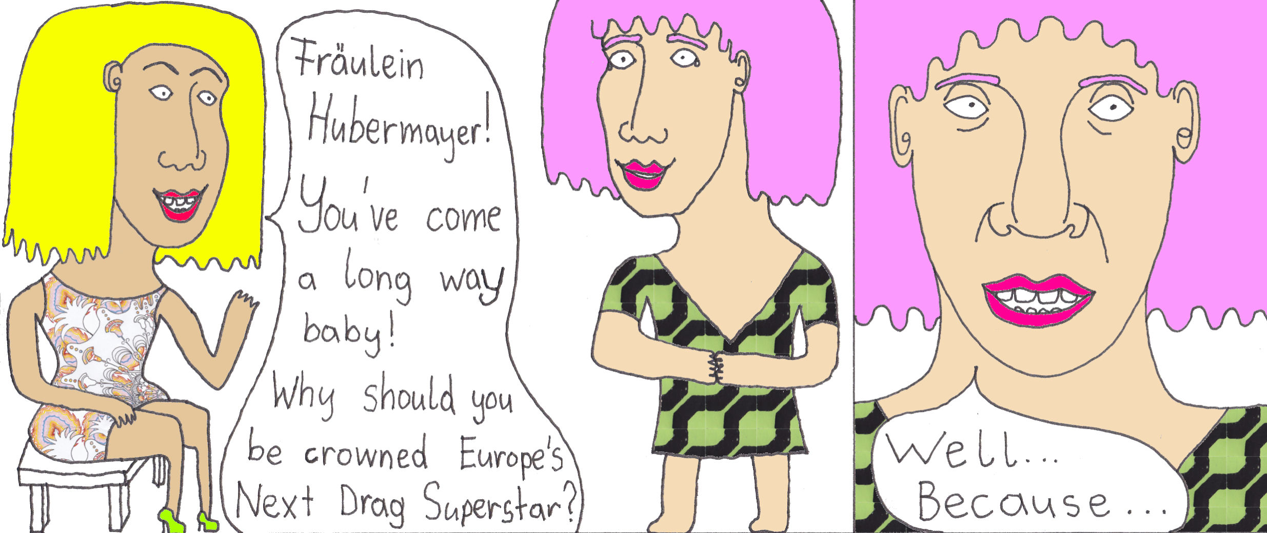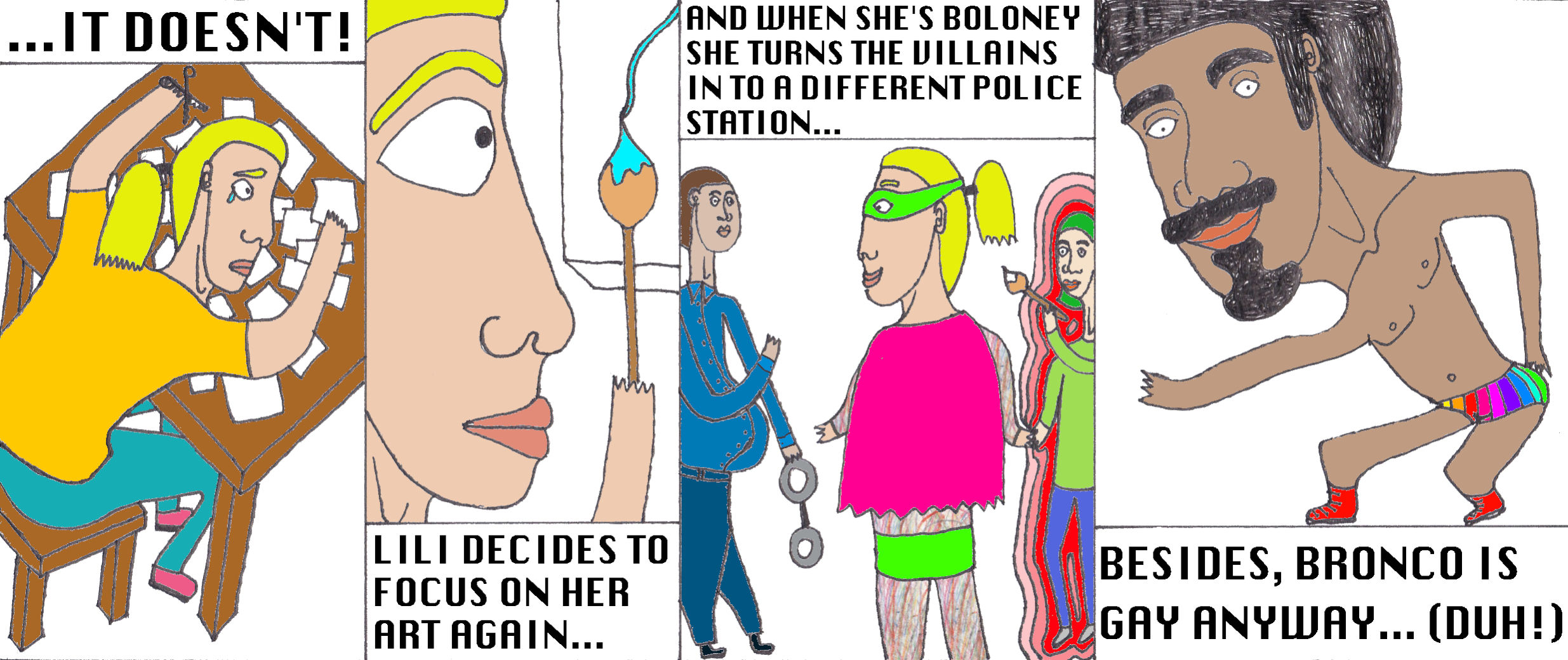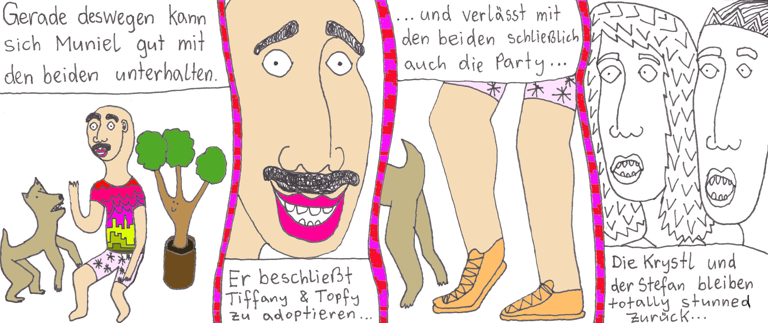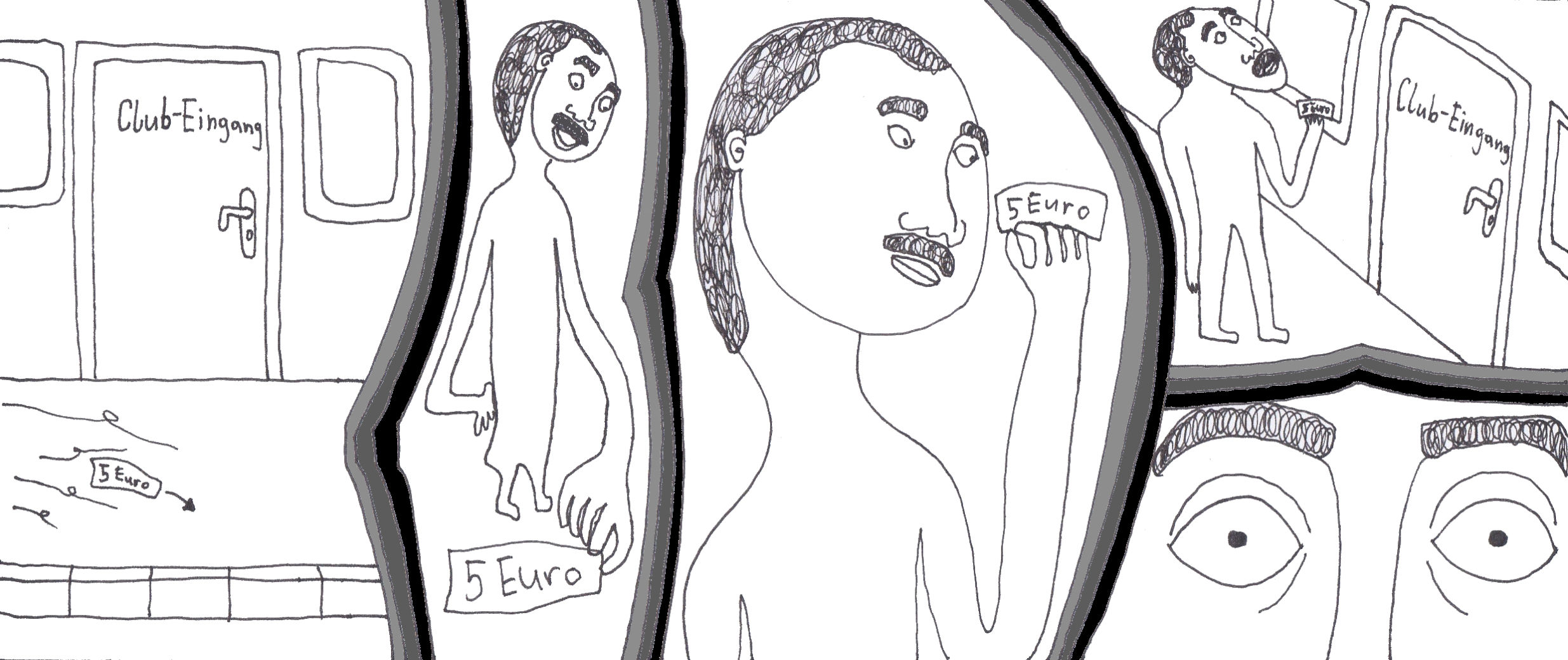 Zum Schluss noch die letzten drei Seiten meines ersten Comic-Zines, weil sie einerseits ein schönes, schräges Ende bilden und andererseits halt einfach geil ausschauen, Ha!