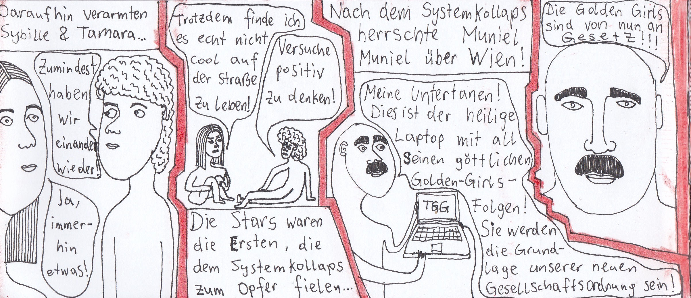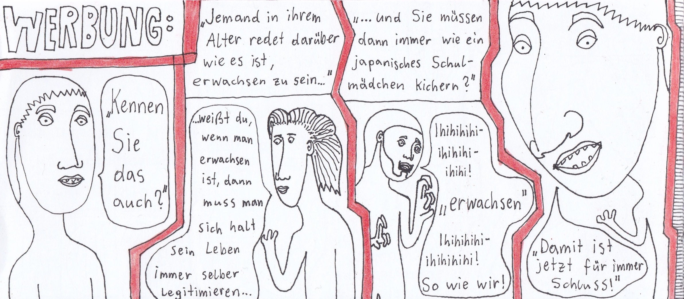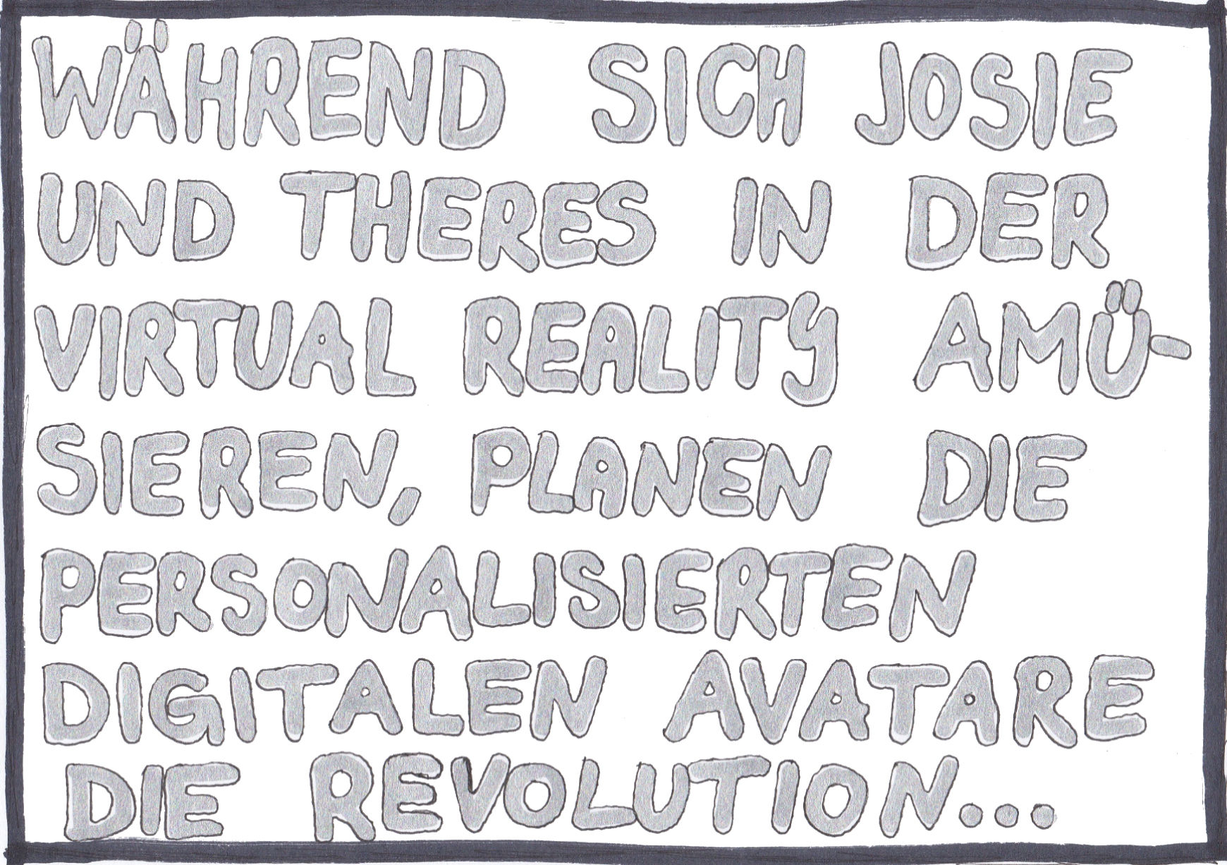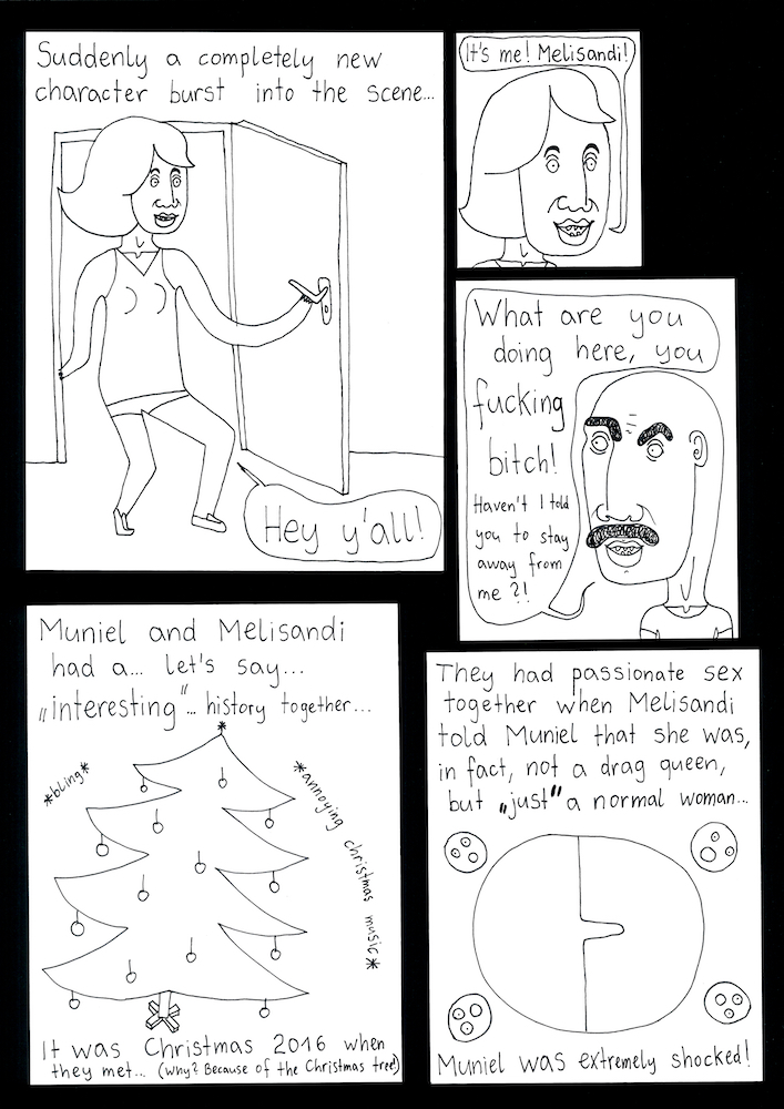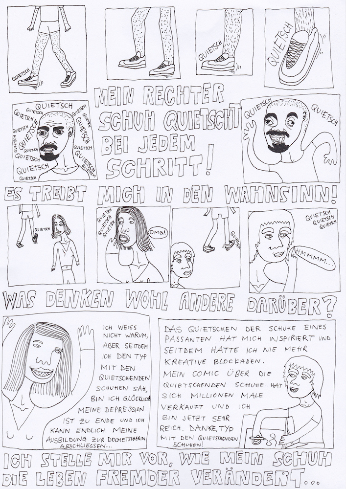 Am Ende hab ich’s tatsächlich auf 24 Seiten geschafft, die zwar nicht in Form eines klassischen Comics strukturiert sind, sondern eher eine wilde Re-Interpretation meiner Frust-Skizzen darstellen, aber yeah: Ich hab’s durchgezogen!