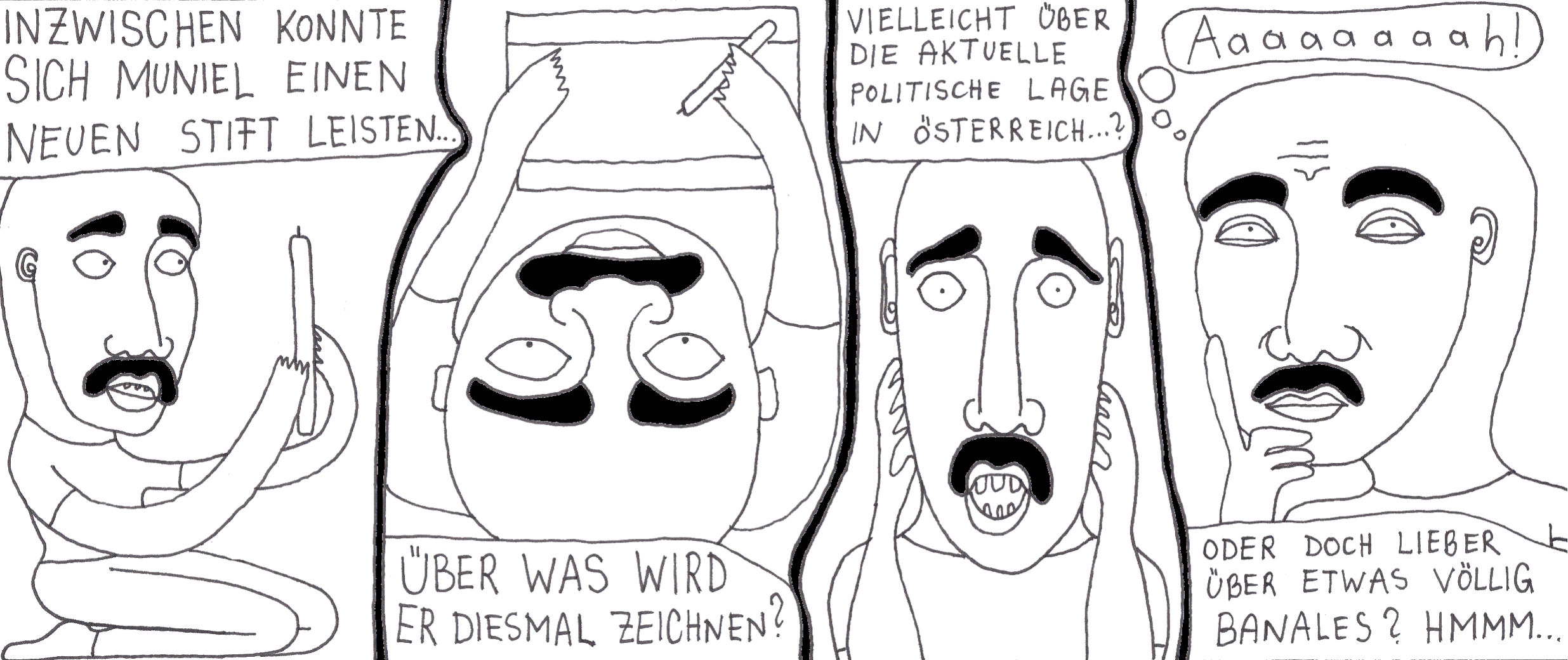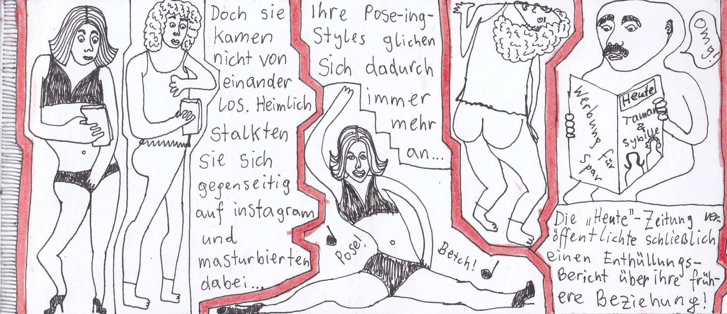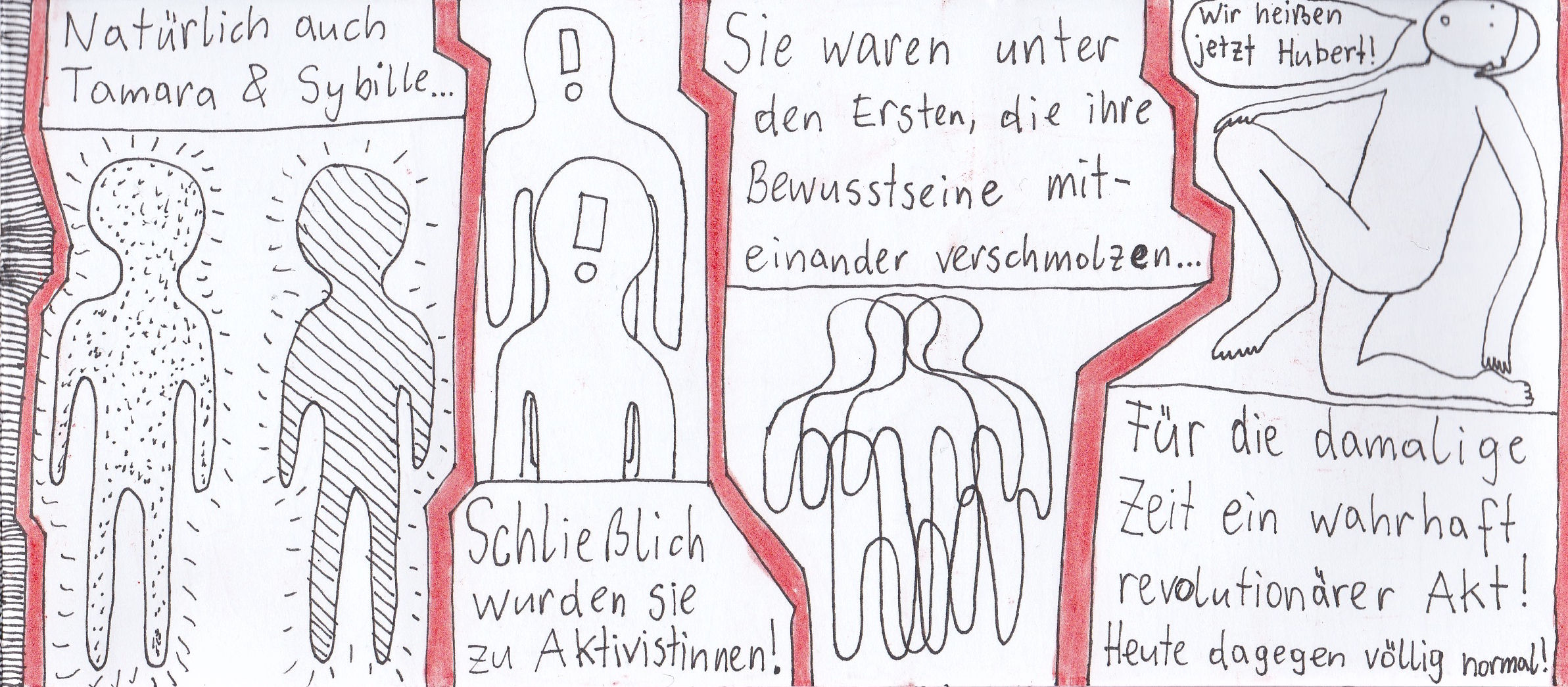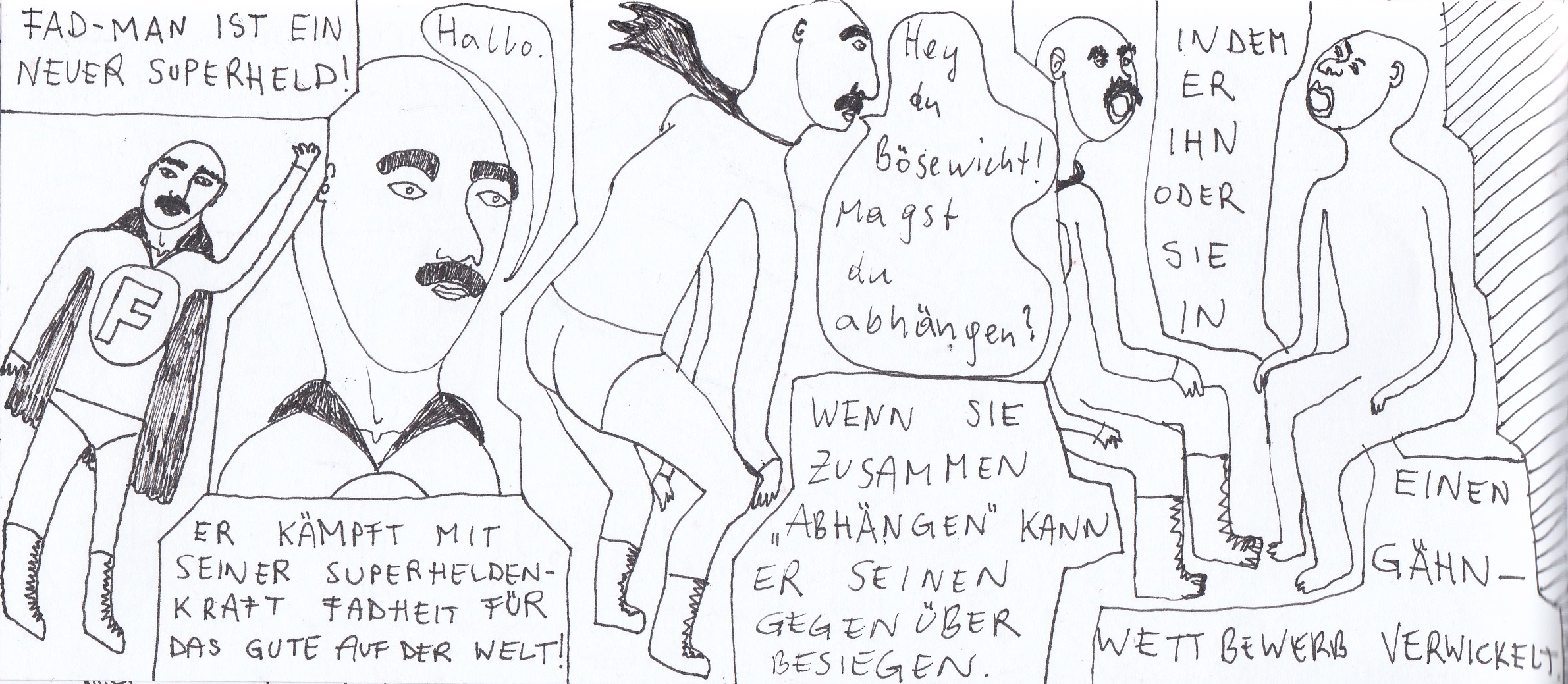 Damals hatte ich zwei selbstgebundene Bücher im ultra-Querformat, perfekt für Comicstrips.
