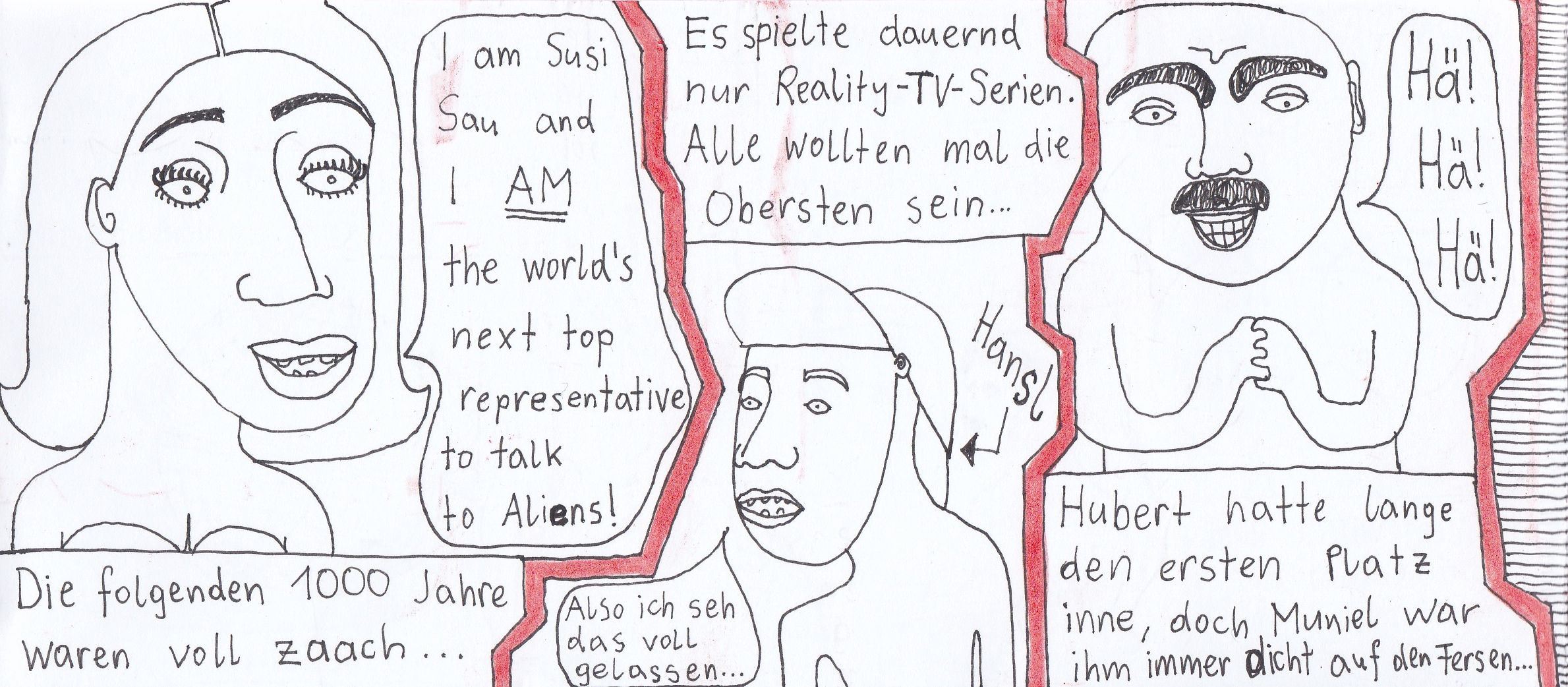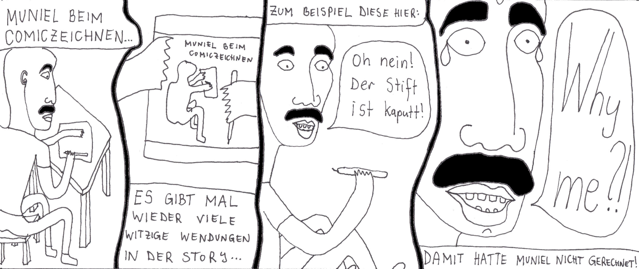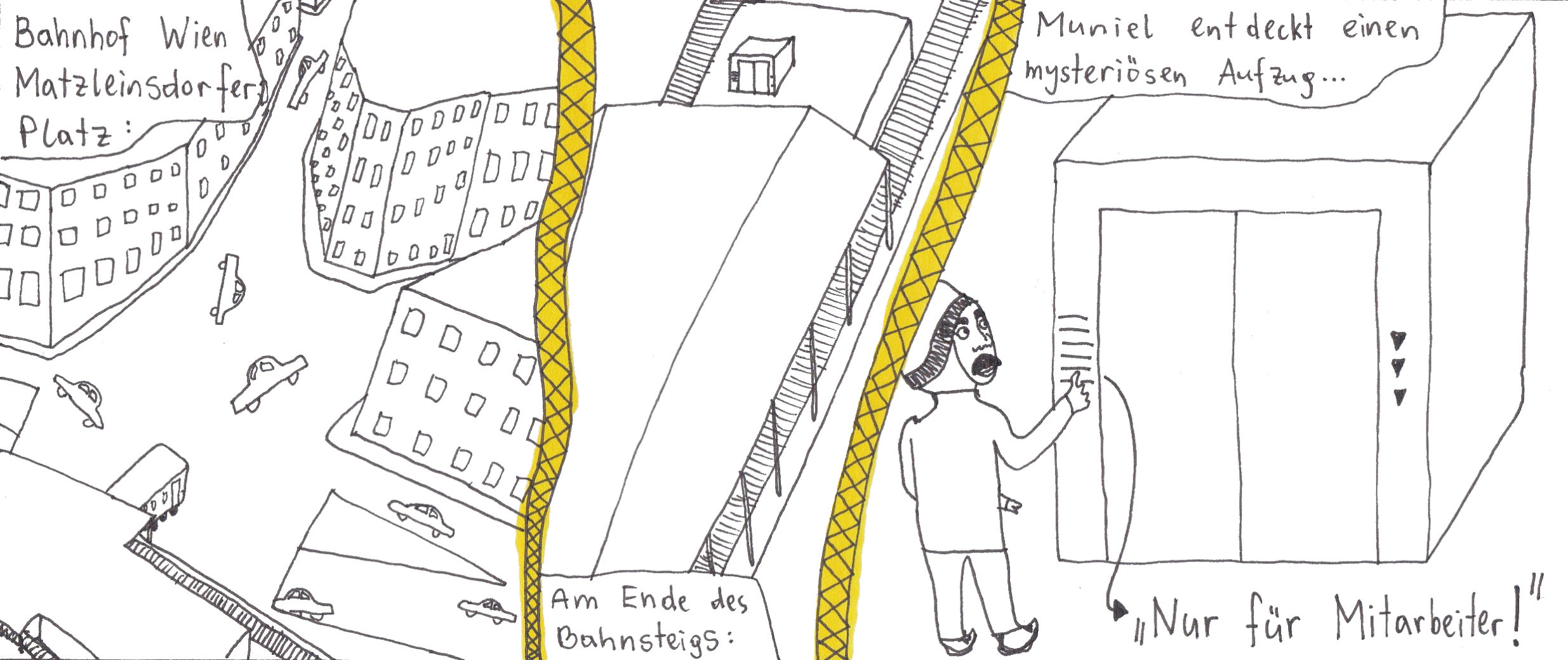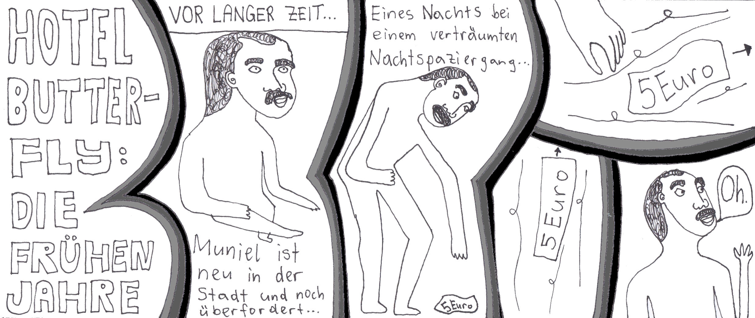 Damals hatte ich zwei selbstgebundene Bücher im ultra-Querformat, perfekt für Comicstrips.