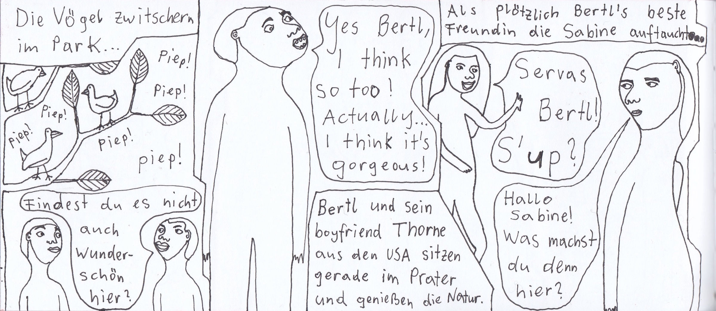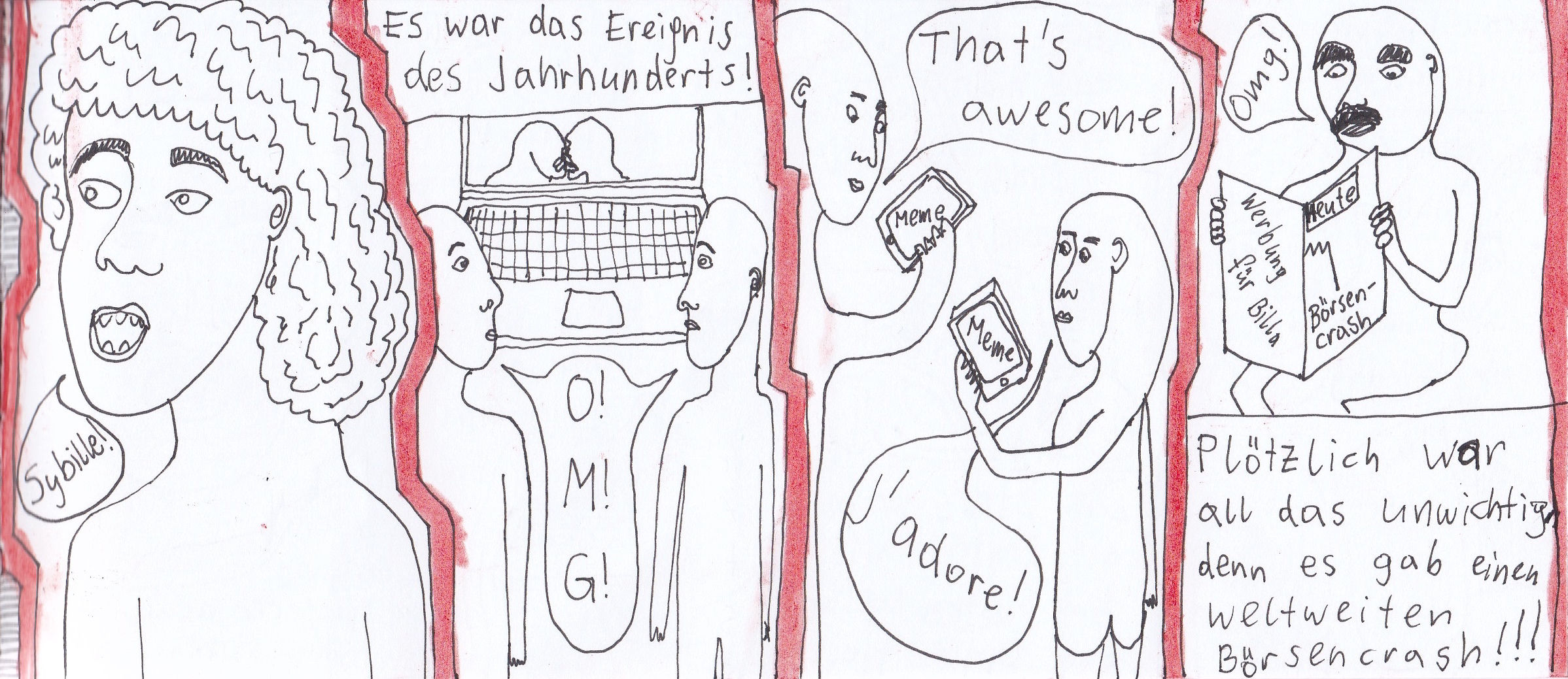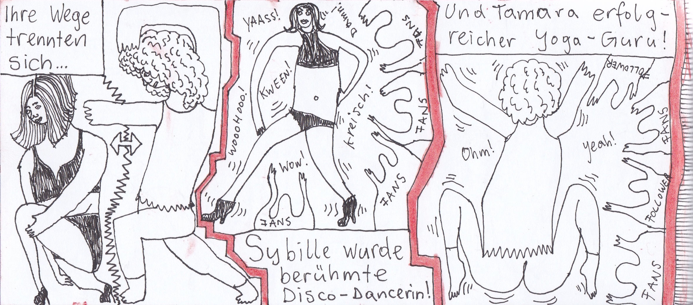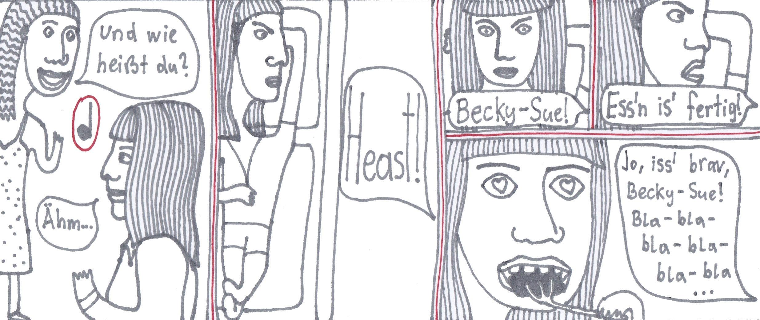 Damals hatte ich zwei selbstgebundene Bücher im ultra-Querformat, perfekt für Comicstrips.