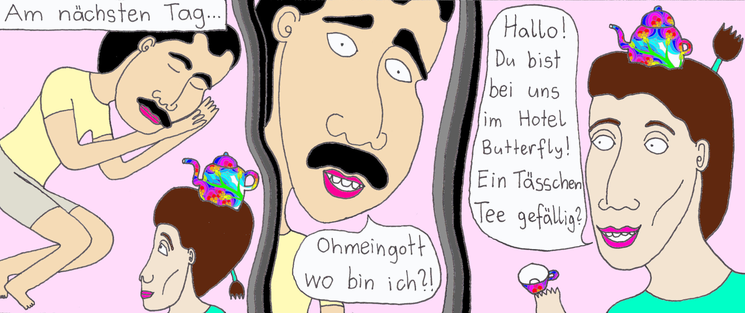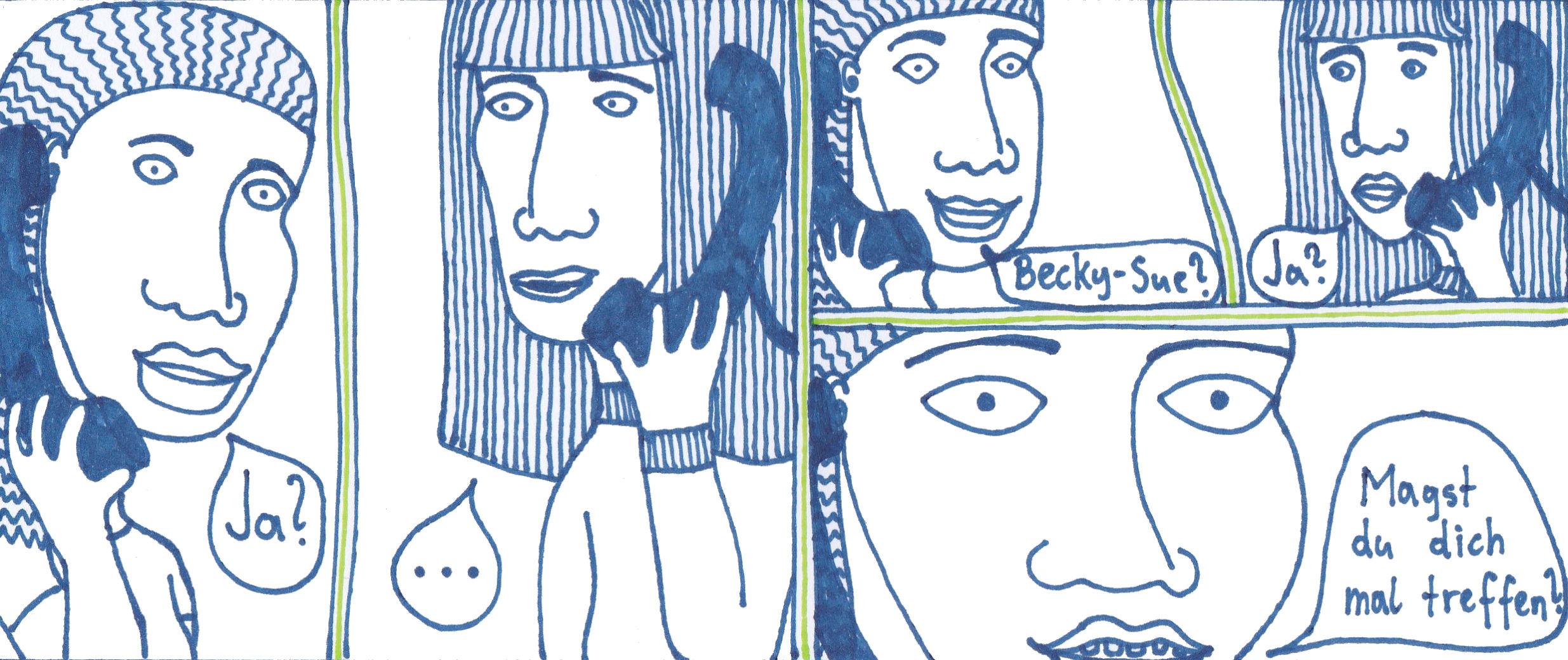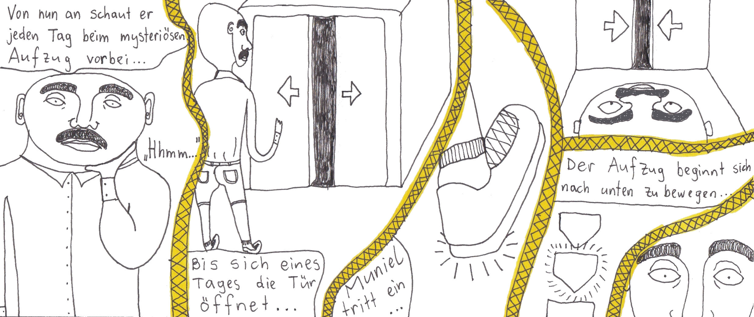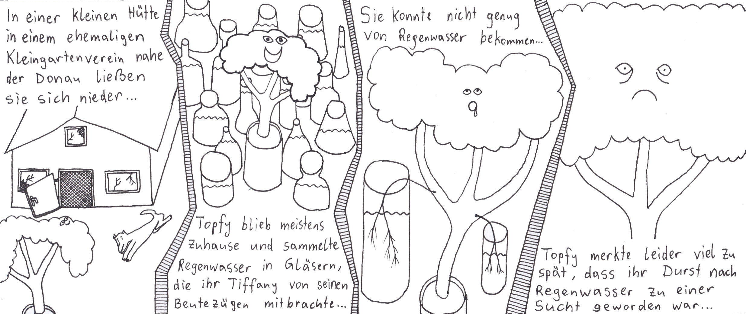 Damals hatte ich zwei selbstgebundene Bücher im ultra-Querformat, perfekt für Comicstrips.